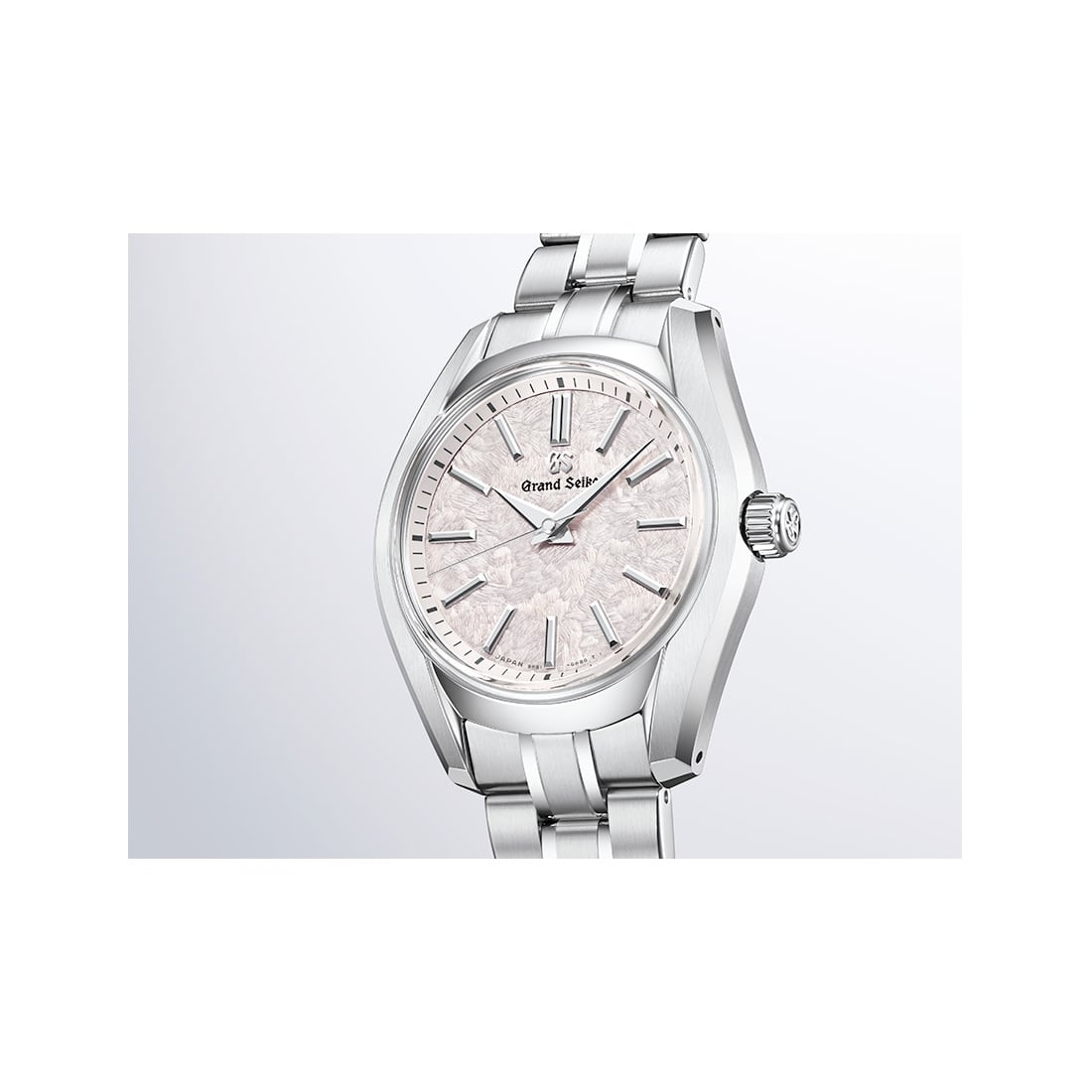 Grand Seiko’s first automatic watch, the 62GS, was introduced in 1967. Its most distinctive feature is almost certainly its bezel-less structure, in which the glass is directly fixed to the case body. This design reduces the visual thickness of the watch while allowing light to enter the dial from multiple angles. This model inherits the bezel-less structure and other design elements of the original 62GS from 1967, while refining aspects such as wearability and crown operability to achieve a more contemporary design. The bracelet features a tapered design for a natural fit and a sharp, elegant look on the wrist.