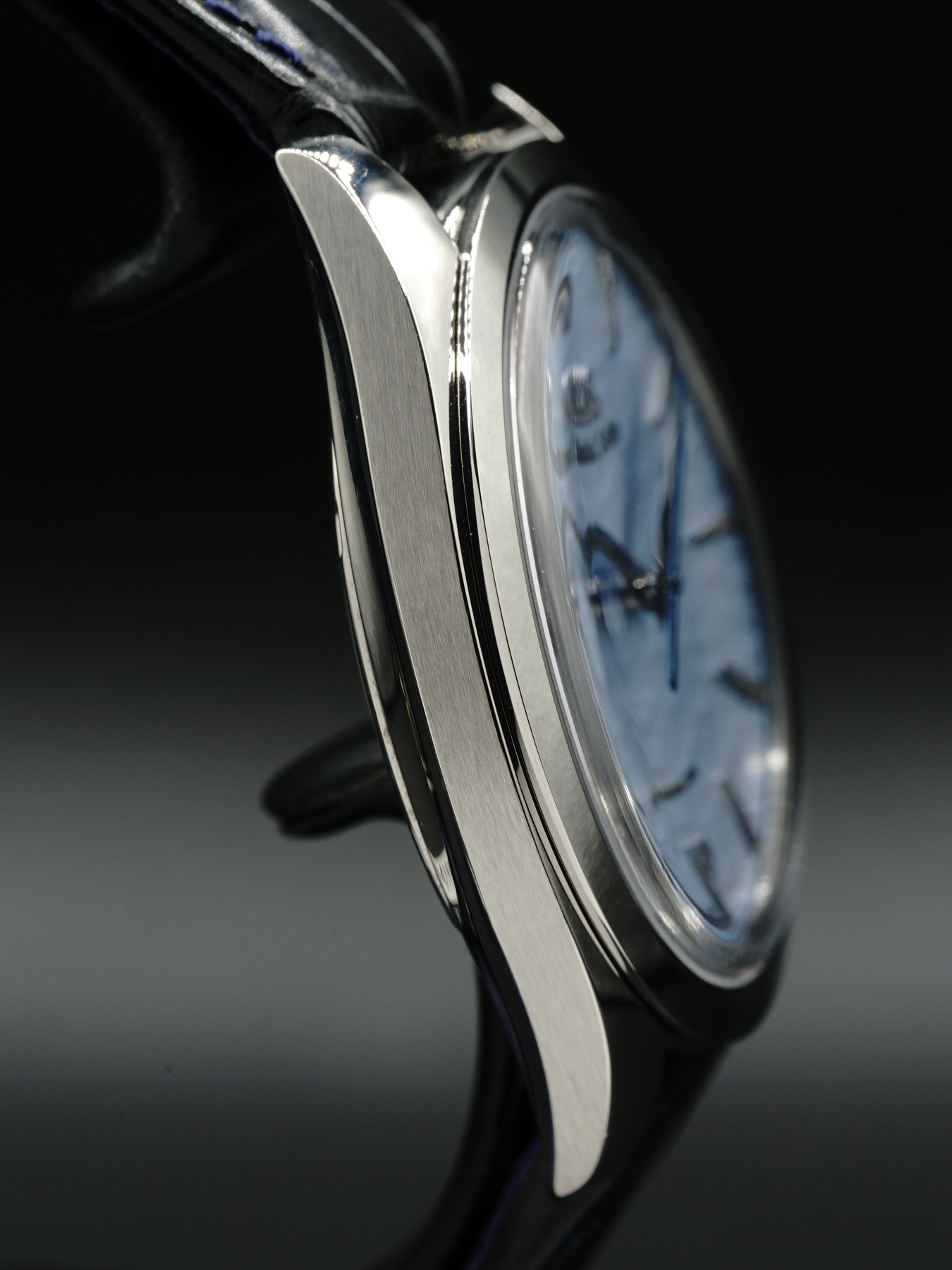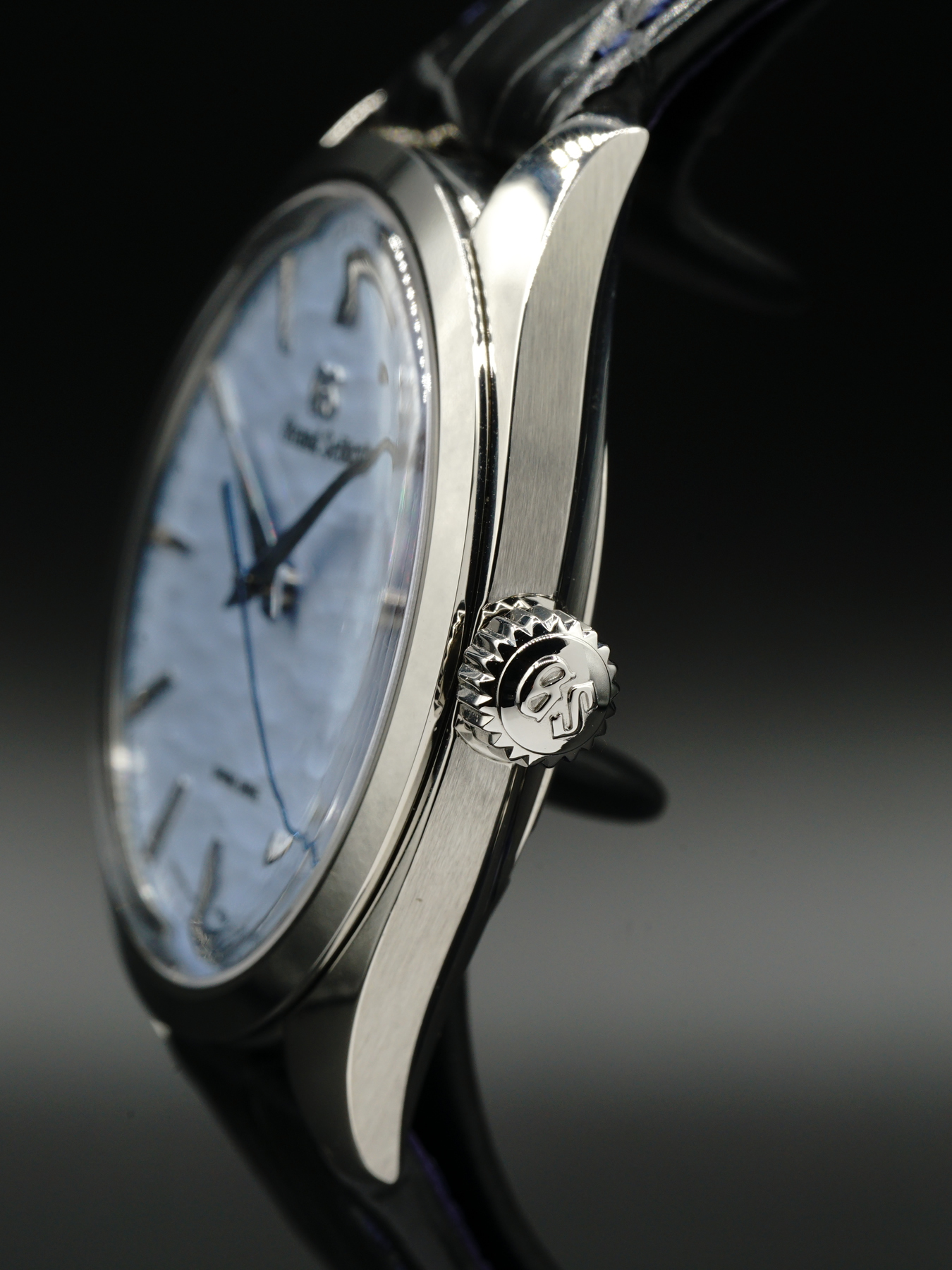 True or not, the legend has inspired the craftsmen and women at the nearby Shinshu Watch Studio to create a dial of exquisite subtlety for this hand-winding Spring Drive timepiece. It has the color, feel and texture of the snow-covered ice on Lake Suwa.