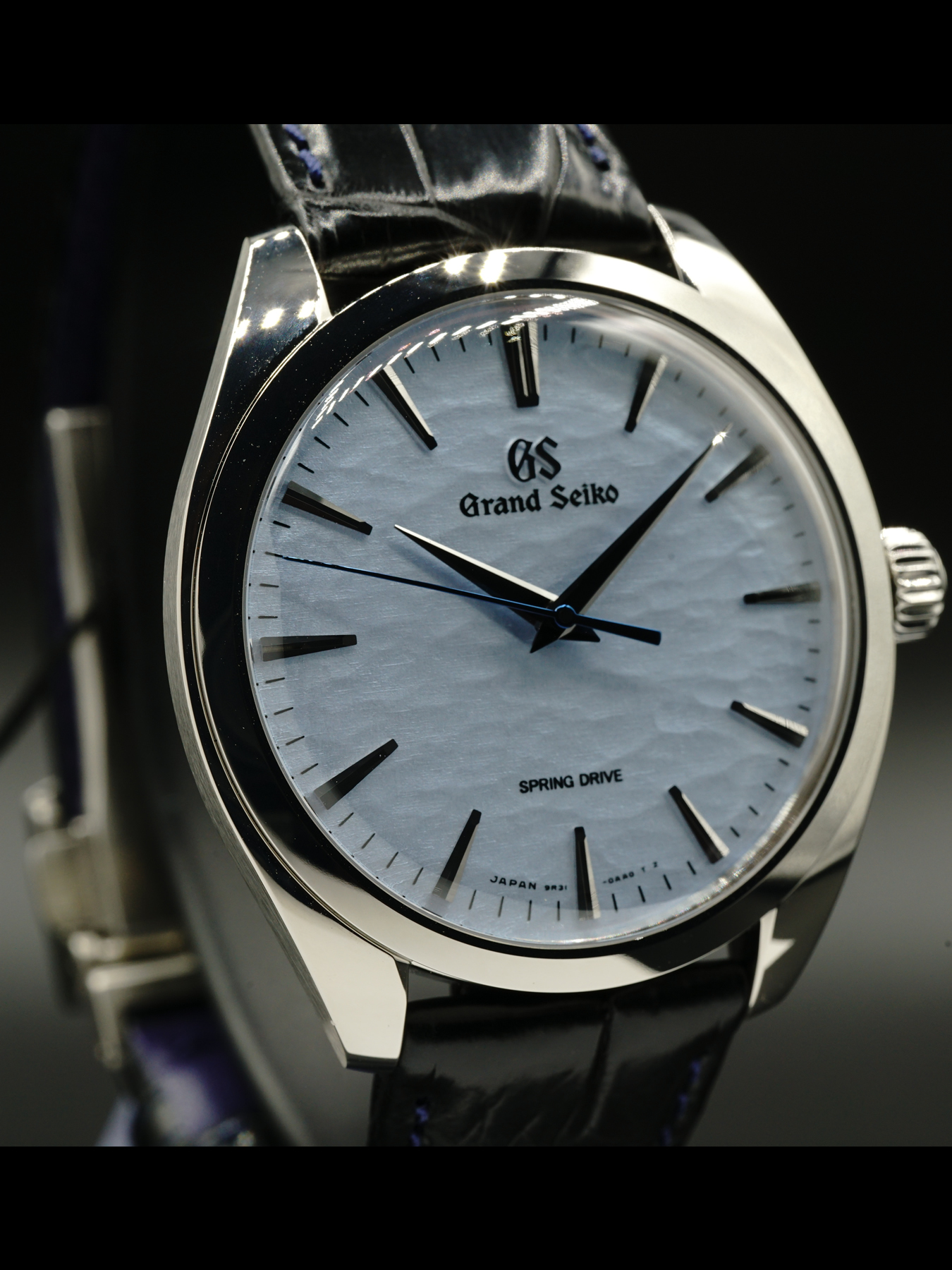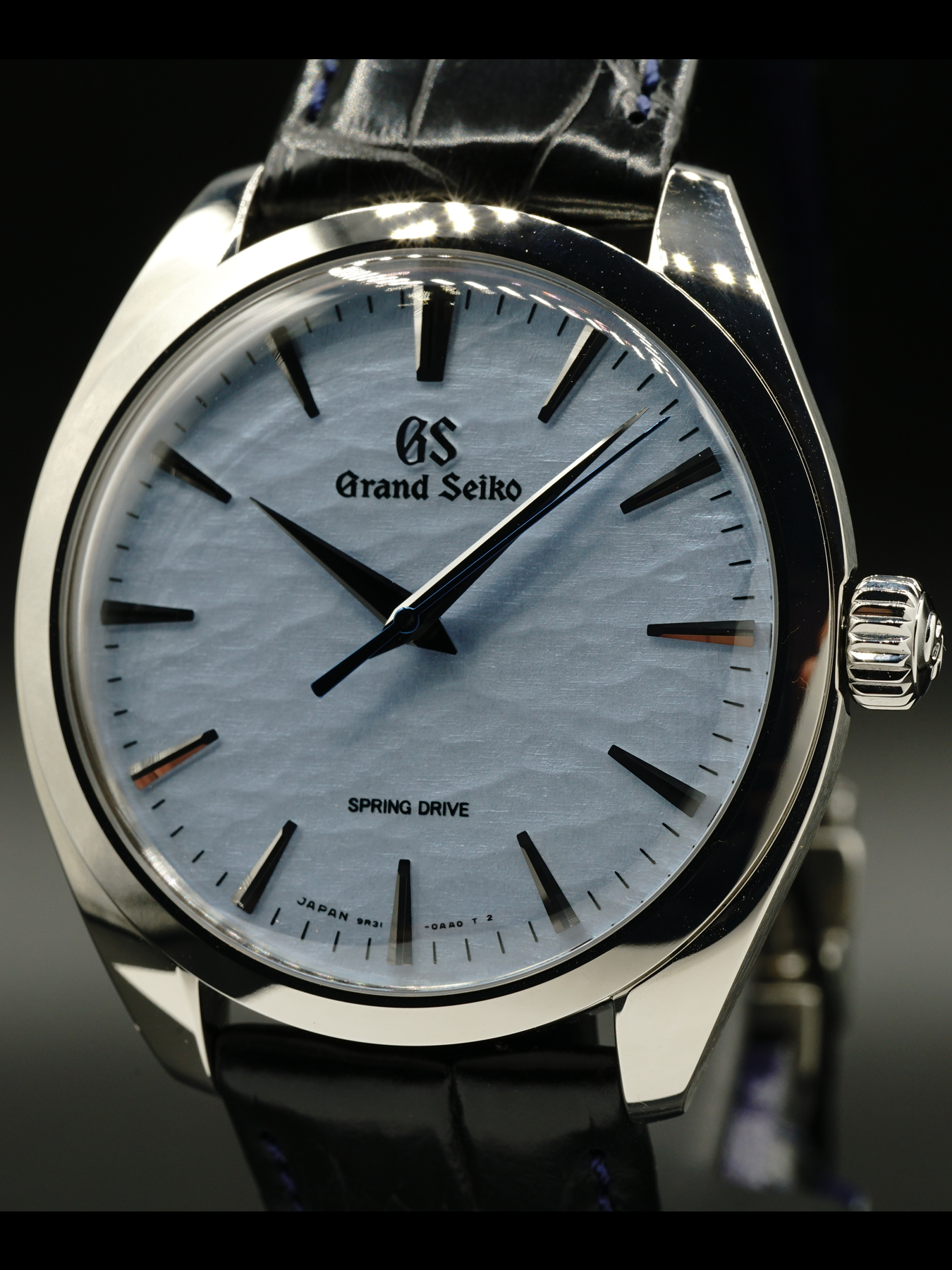 The movement is Spring Drive Caliber 9R31 which has the Dual Spring Barrel that delivers a power reserve of 72 hours when fully wound. Its exquisite finishing is visible through the exhibition case-back along with the power reserve indicator.