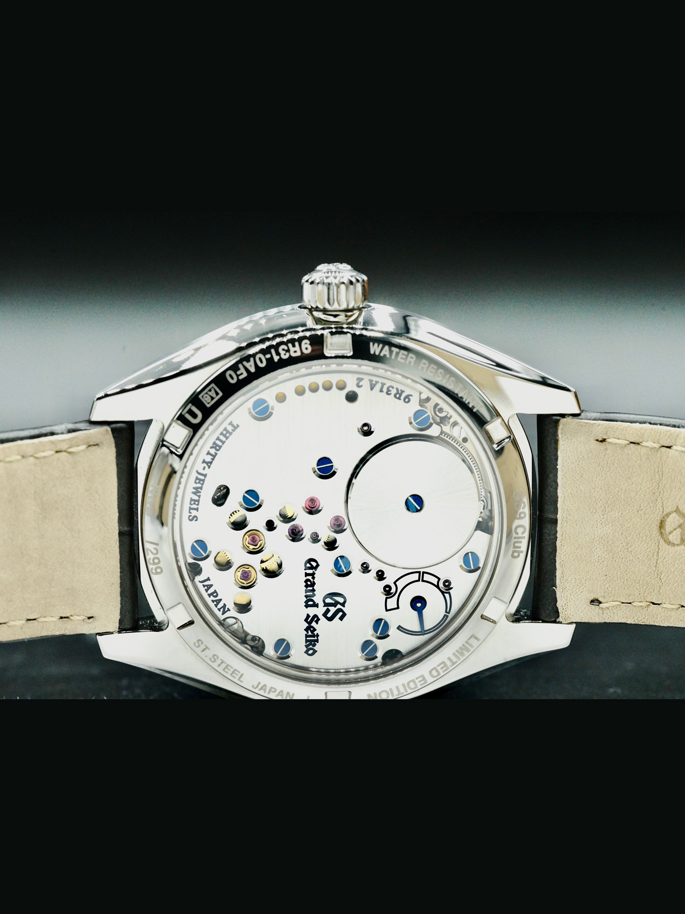 Spring Drive movement powered by Grand Seiko Caliber 9R31 with a power reserve of approximately 72 hours. Water resistance up to 30 meters.