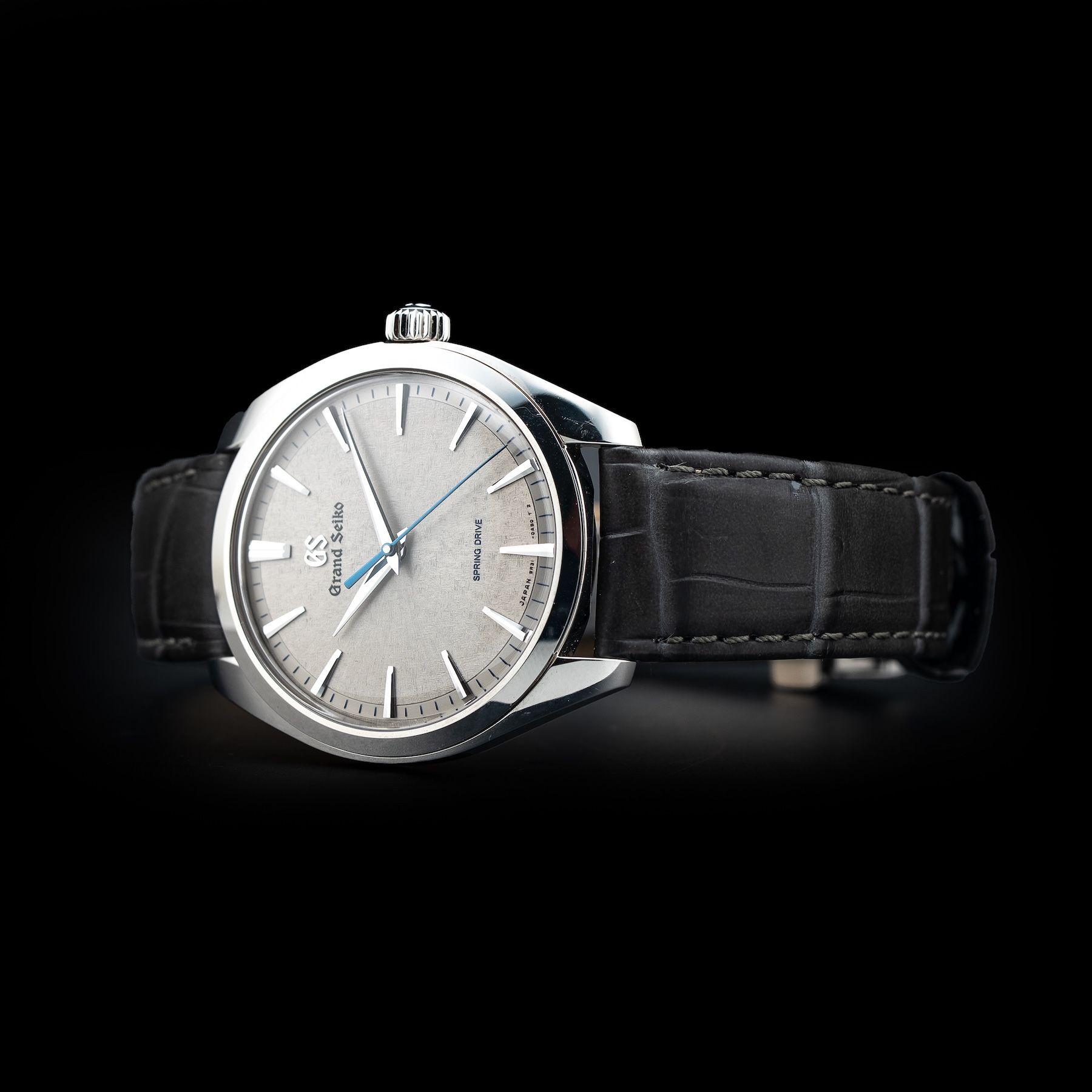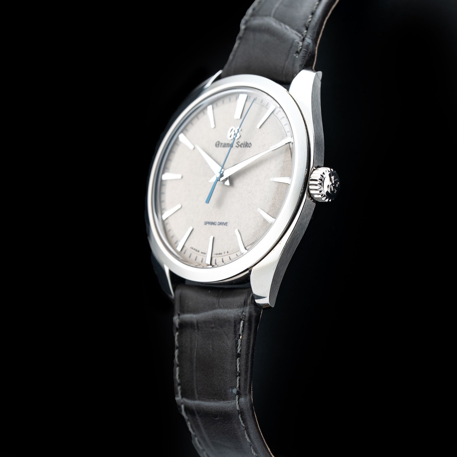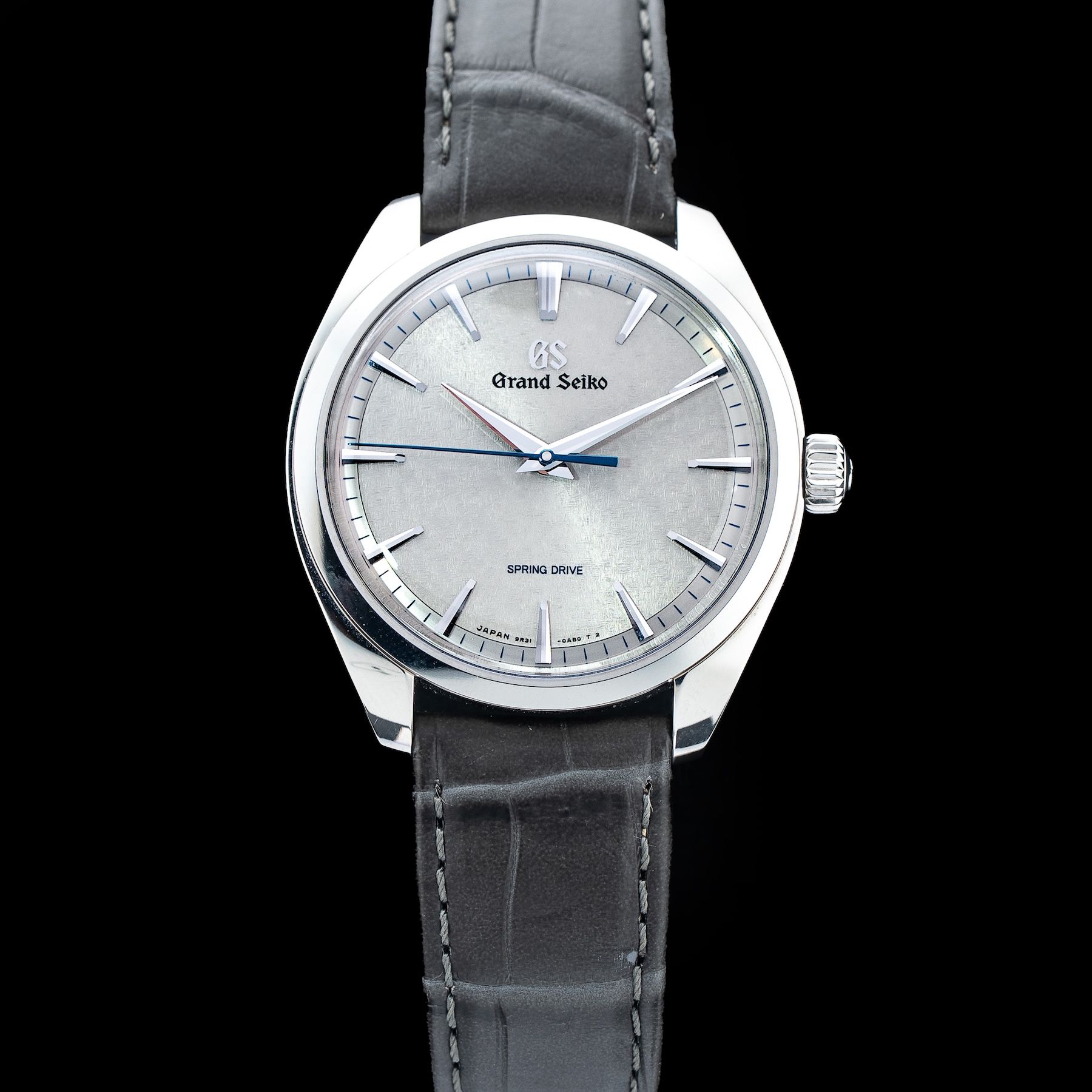 This watch features a 38.5mm stainless steel case on leather strap. This watch also sports a grey Kirazui dial. Powered by a Spring Drive movement powered by Grand Seiko Caliber 9R31 movement. Water resistance up to 30 meters.
