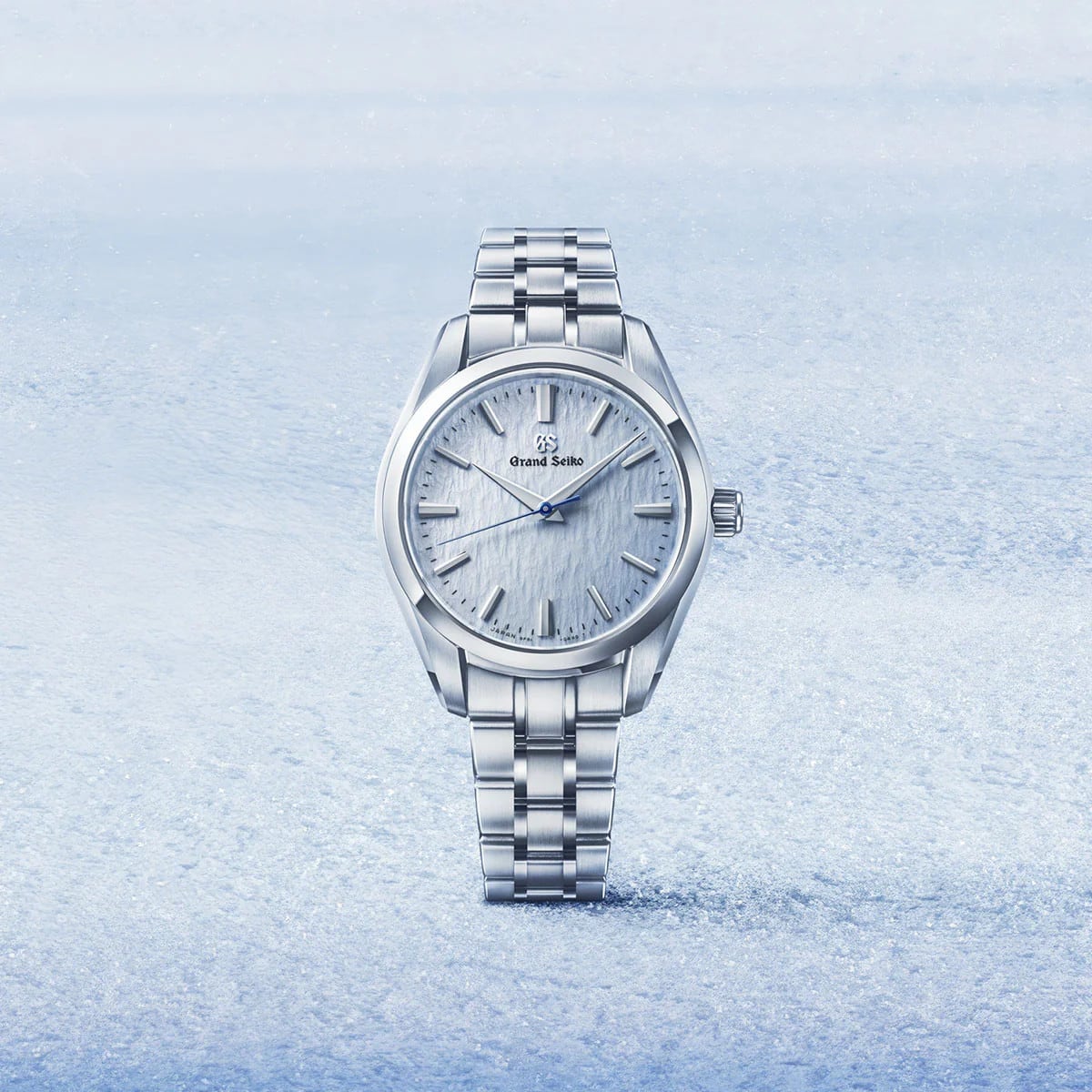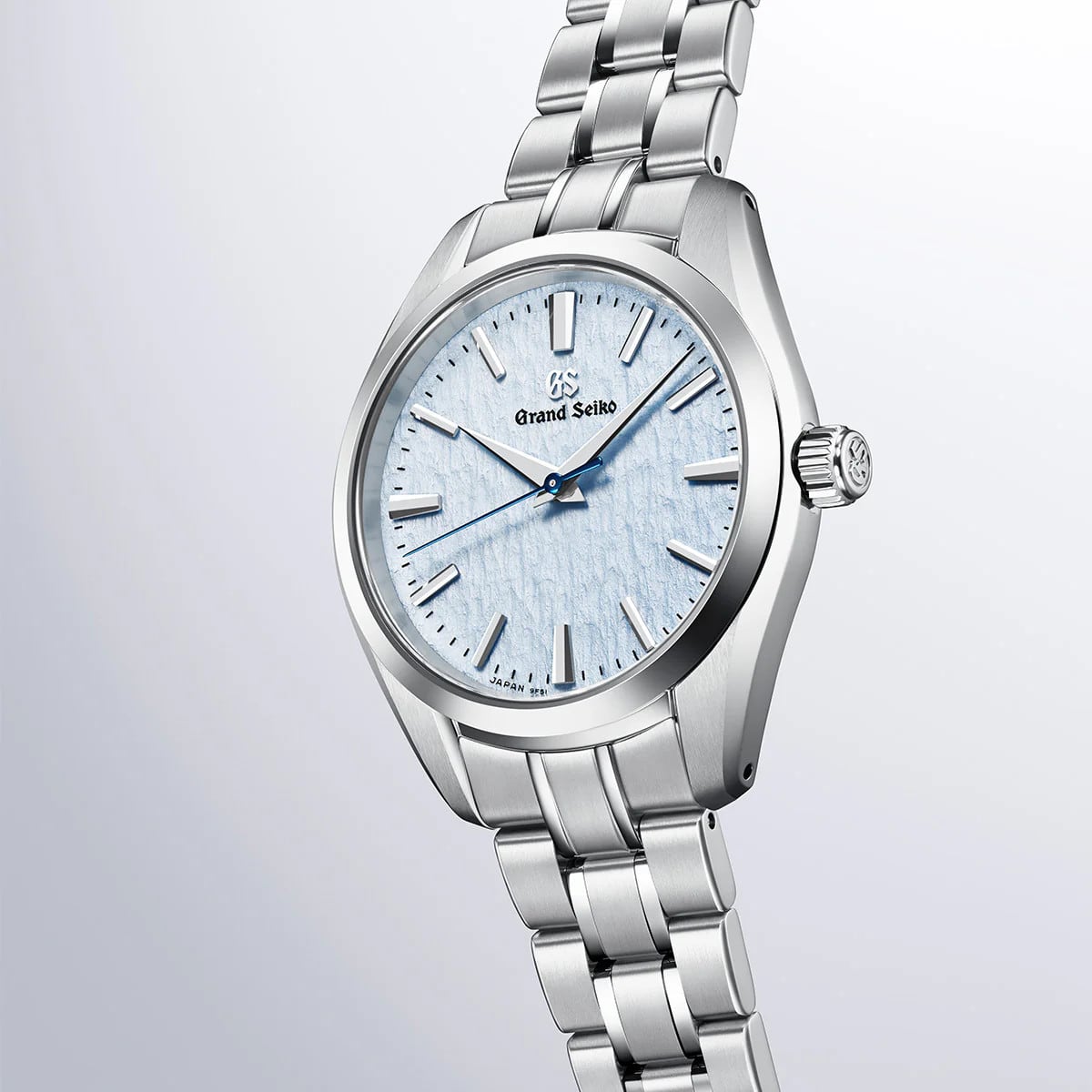 SBGX361 presents a lighter expression of the winter landscape surrounding the Shinshu Watch Studio. Known as Skyflake, the dial takes inspiration from wind-swept snow beneath a clear winter sky, rendered in a soft, pale blue tone. Its delicately textured surface recalls the quiet openness of Shinshu in winter, where snow and sky seem to merge into a single, luminous scene.