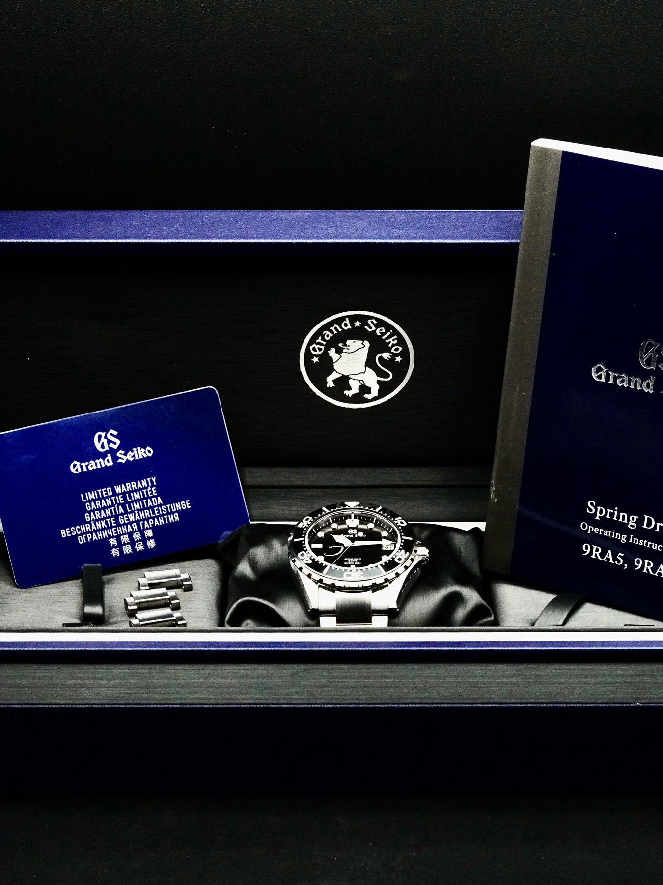 Automatic movement powered by Grand Seiko Spring Drive Caliber 9RA5 with a power reserve of approximately 5 days. Water resistance up to 200 meters.