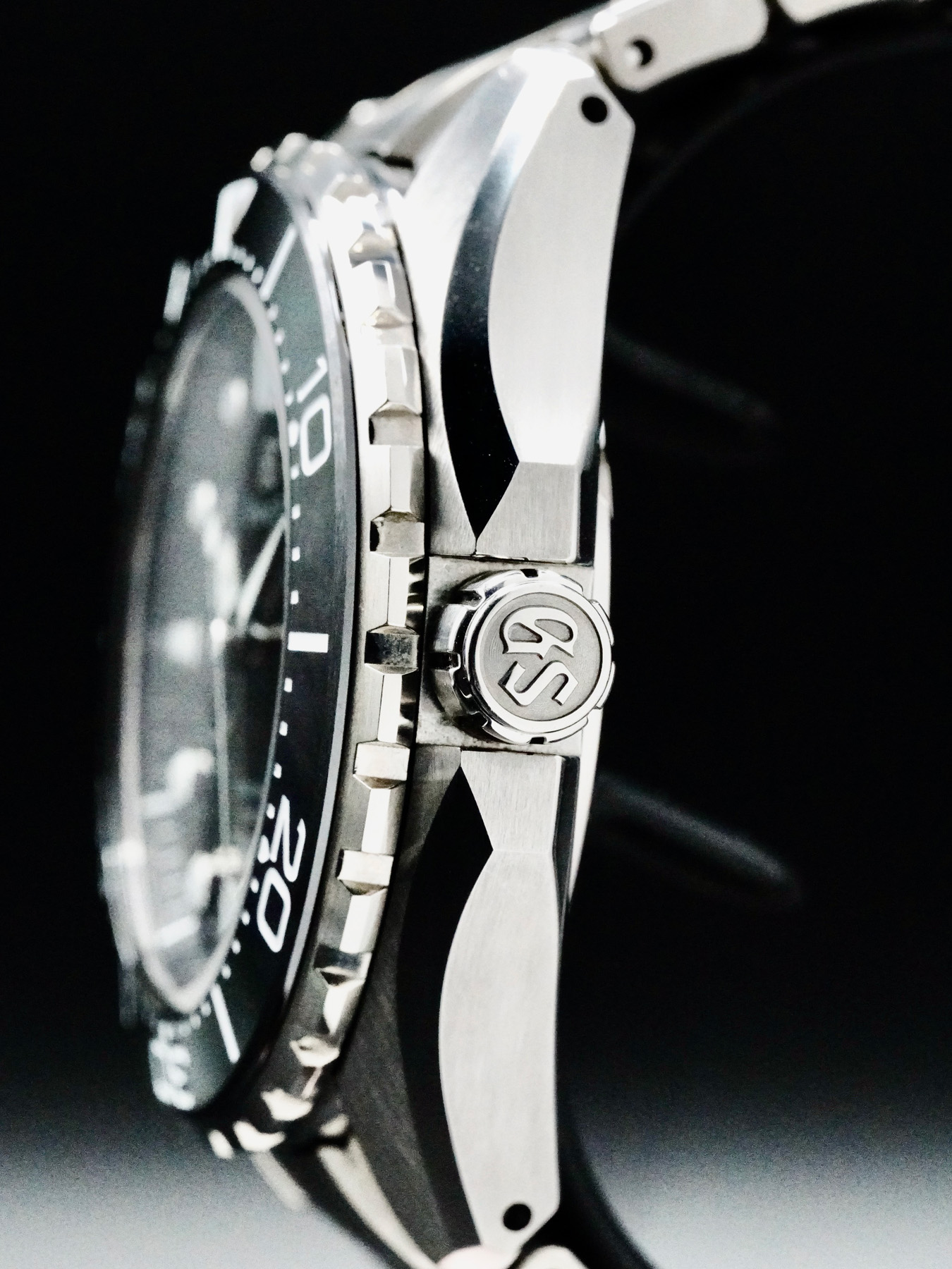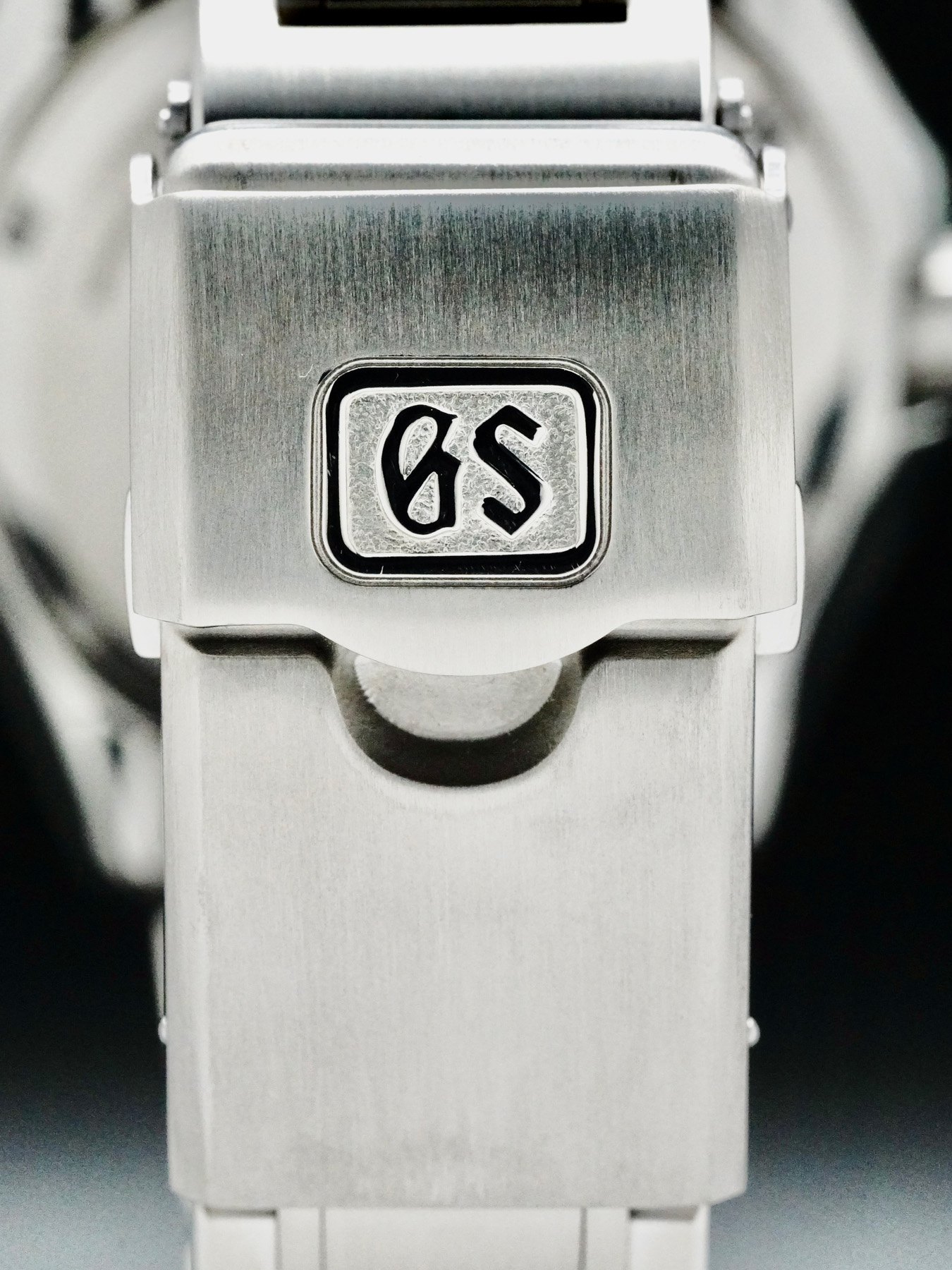 This Grand Seiko SLGA015 features a 43.8mm titanium case with a solid case back on a titanium bracelet. This watch also sports a black dial with luminous hands and index dial markers covered by anti-reflective sapphire crystal.