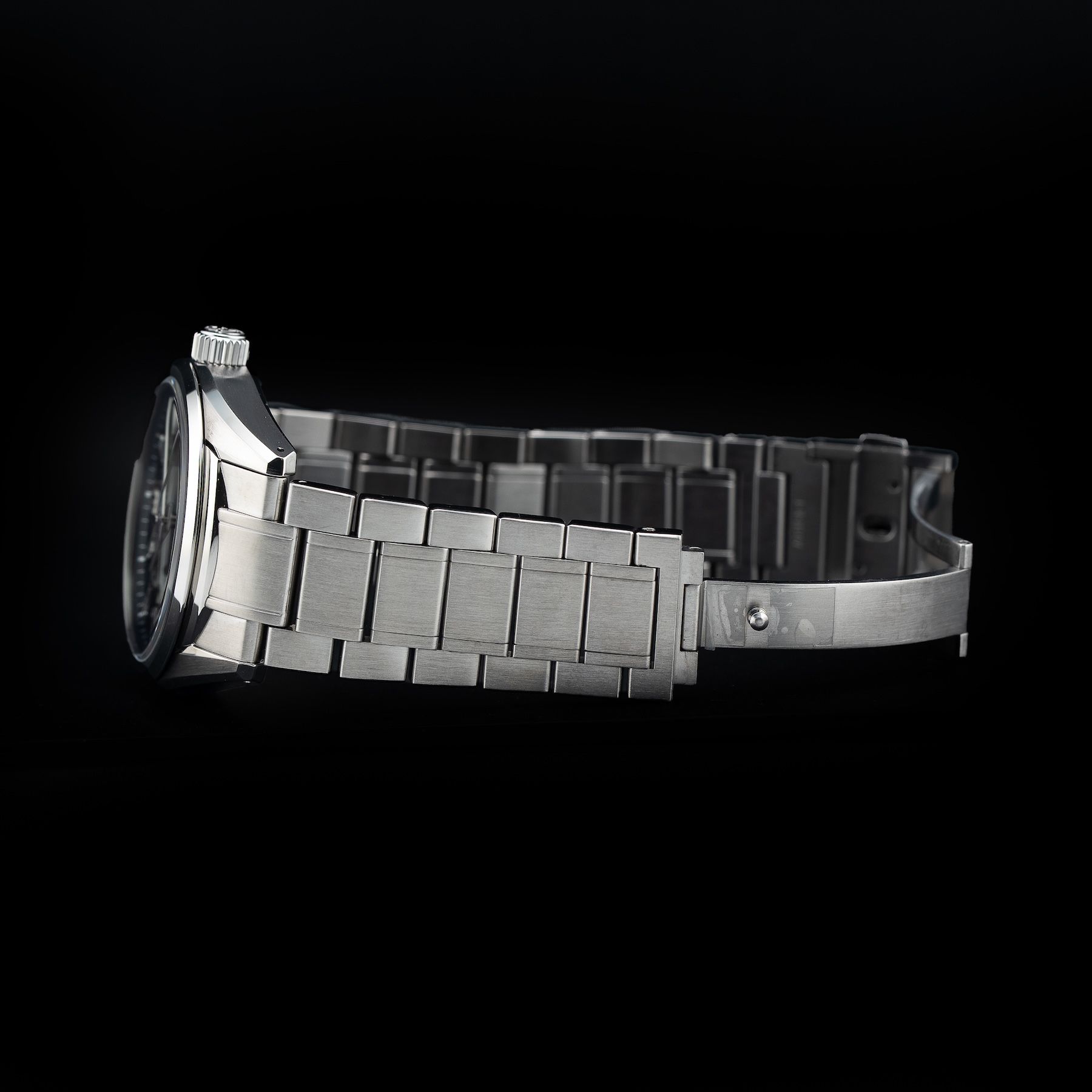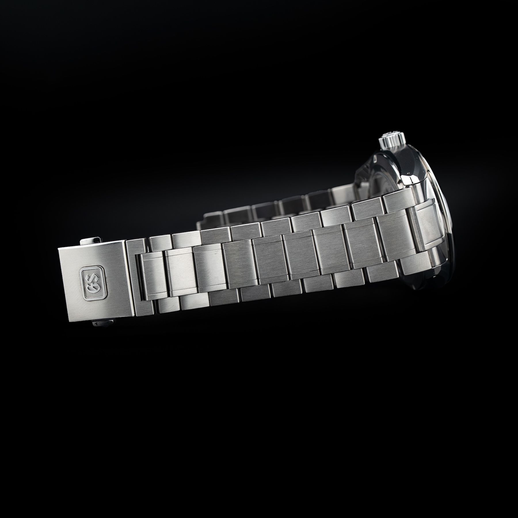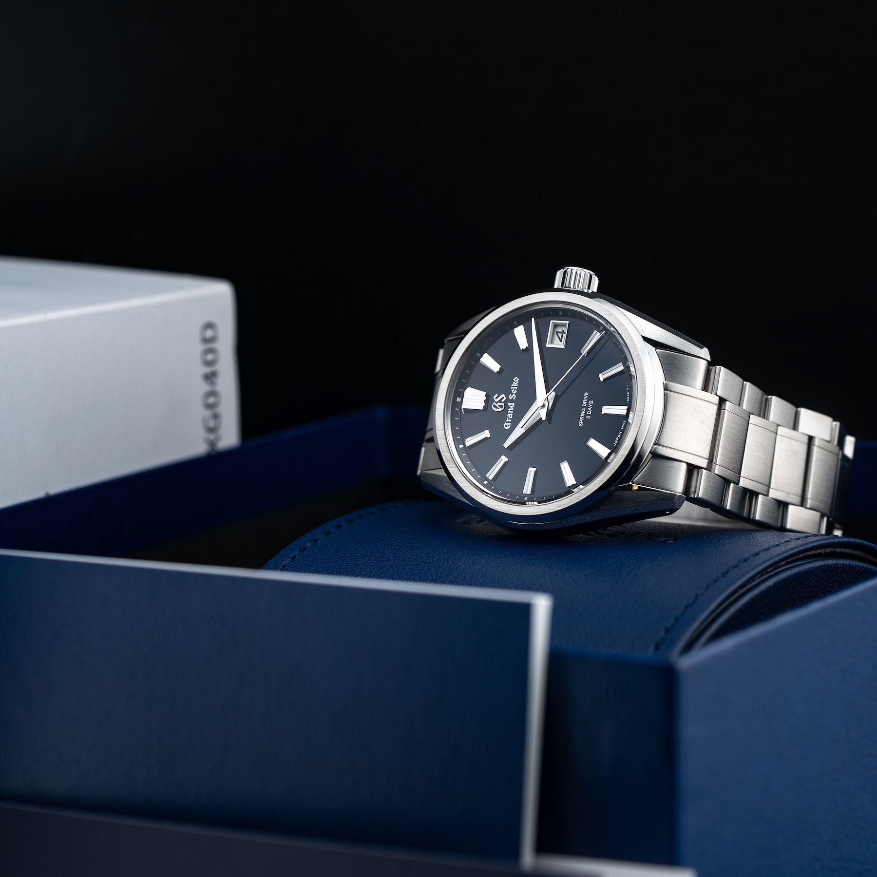 This watch features a 40mm steel case on bracelet. This watch also sports a blue dial. Powered by a Spring Drive Movement. Water resistance up to 100 meters.