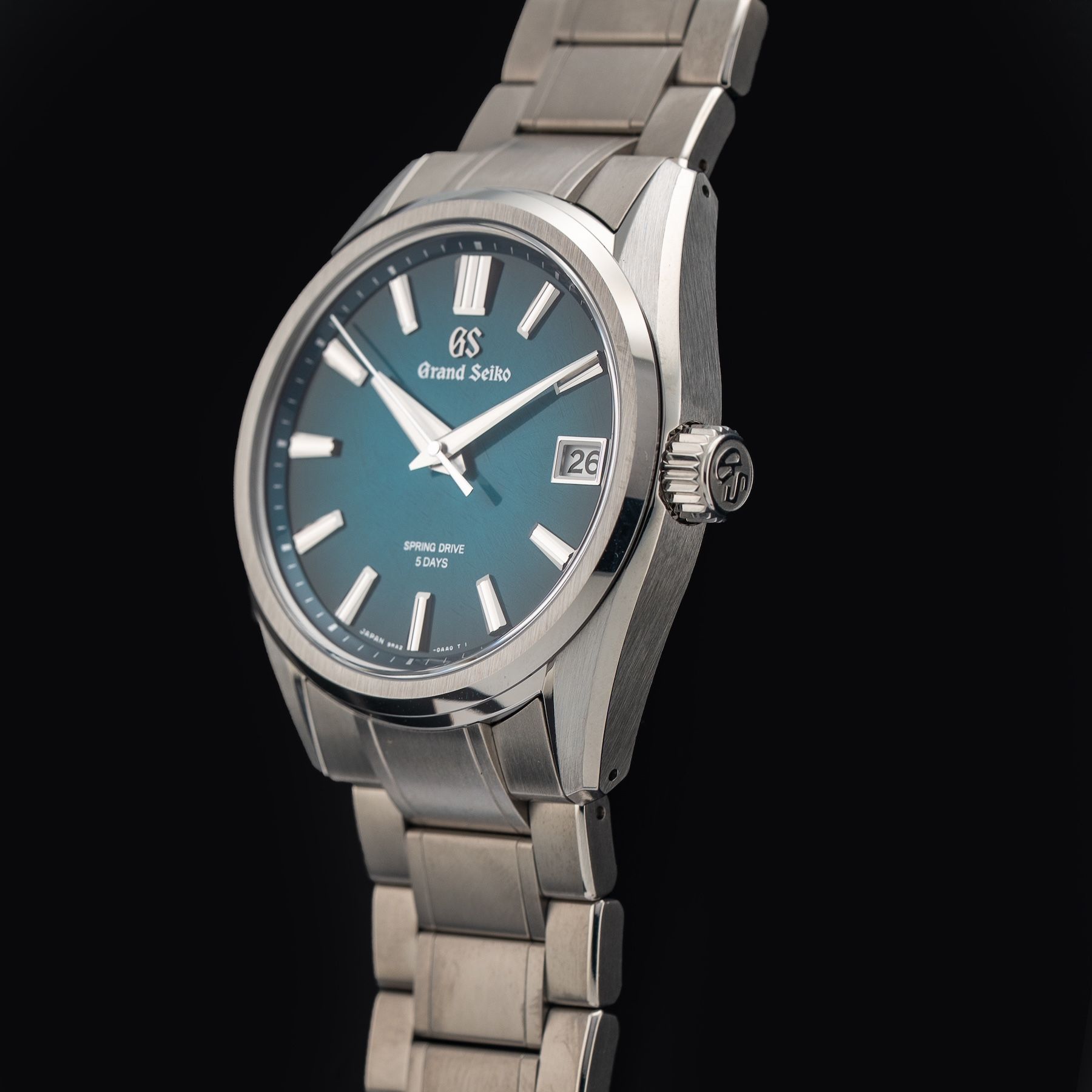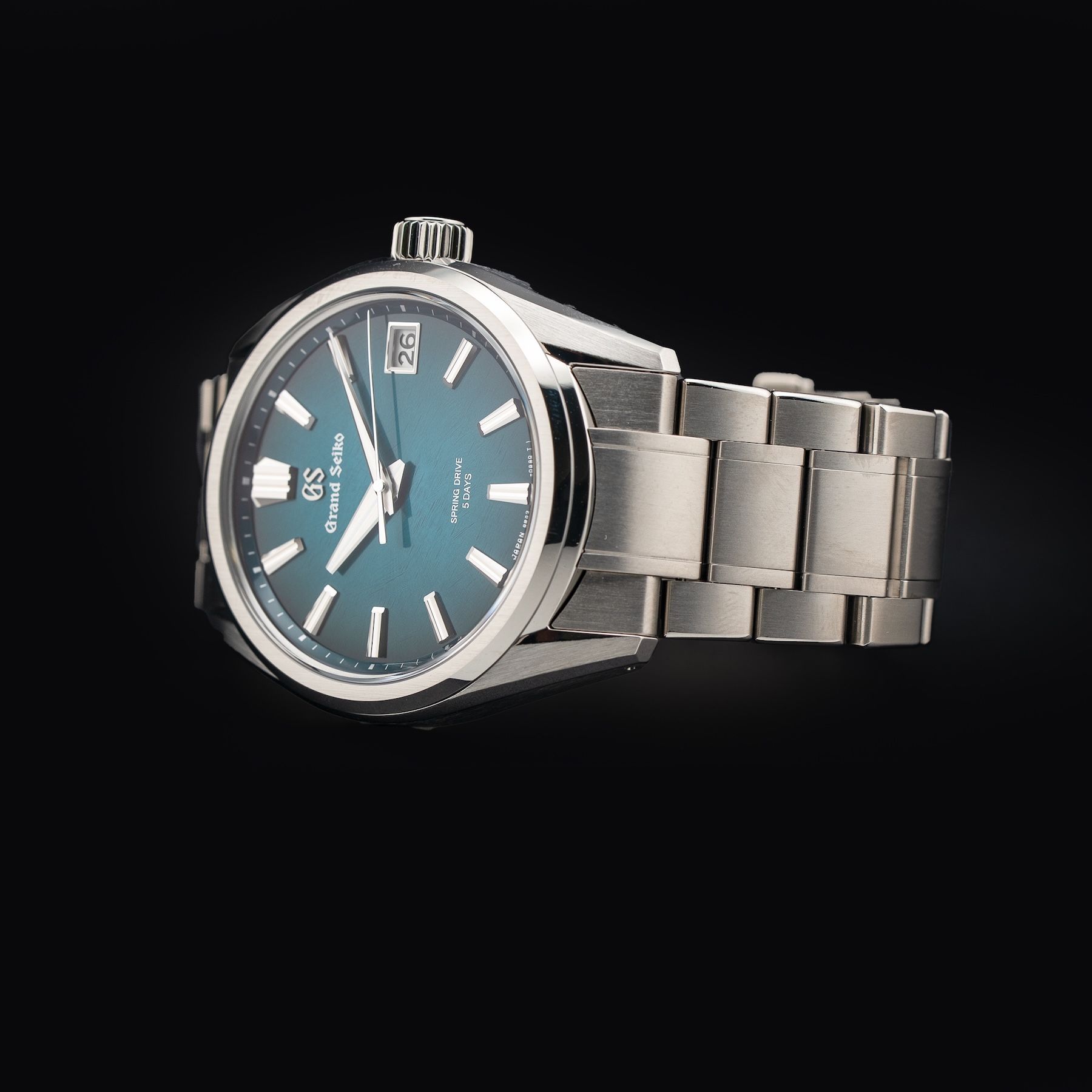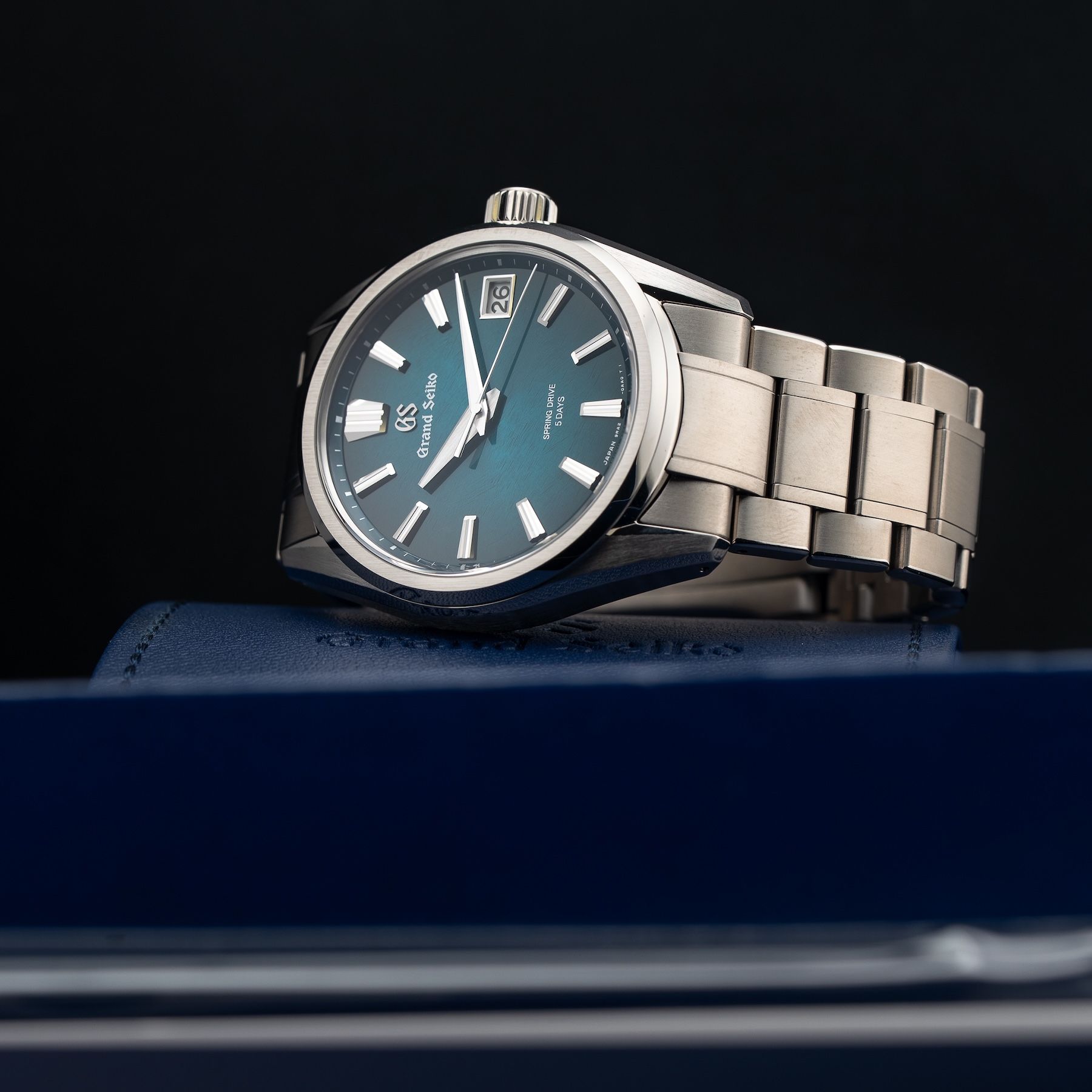 This watch features a 40mm titanium case on titanium bracelet. This watch also sports a blue dial. Powered by a spring drive movement. Water resistance up to 100 meters.