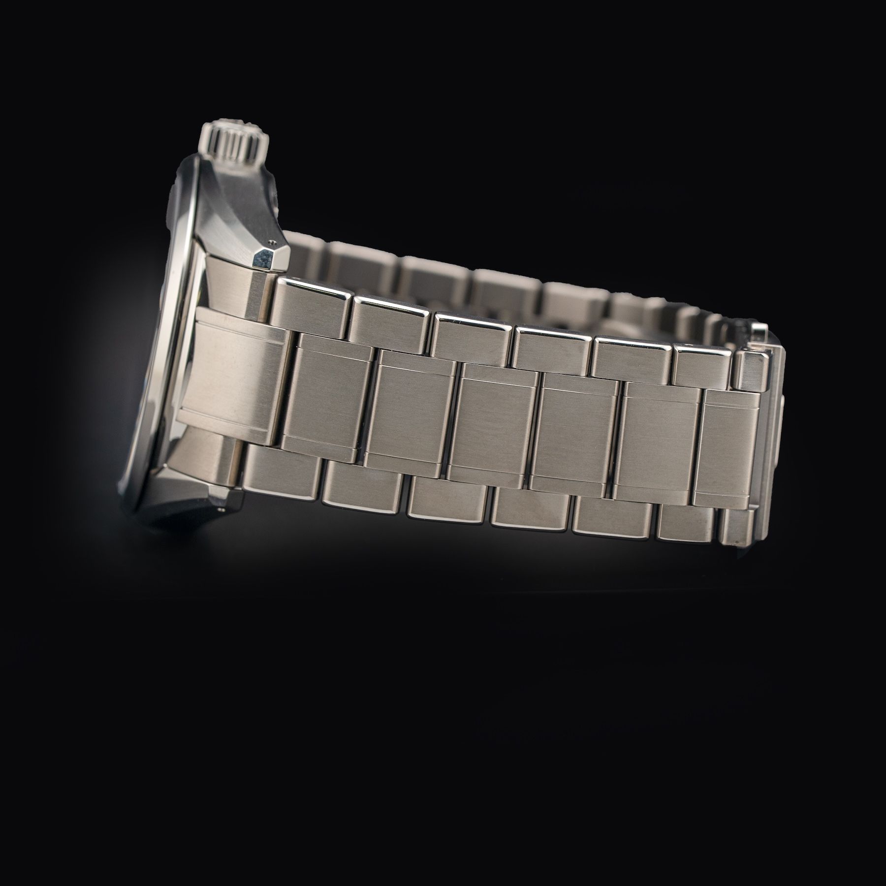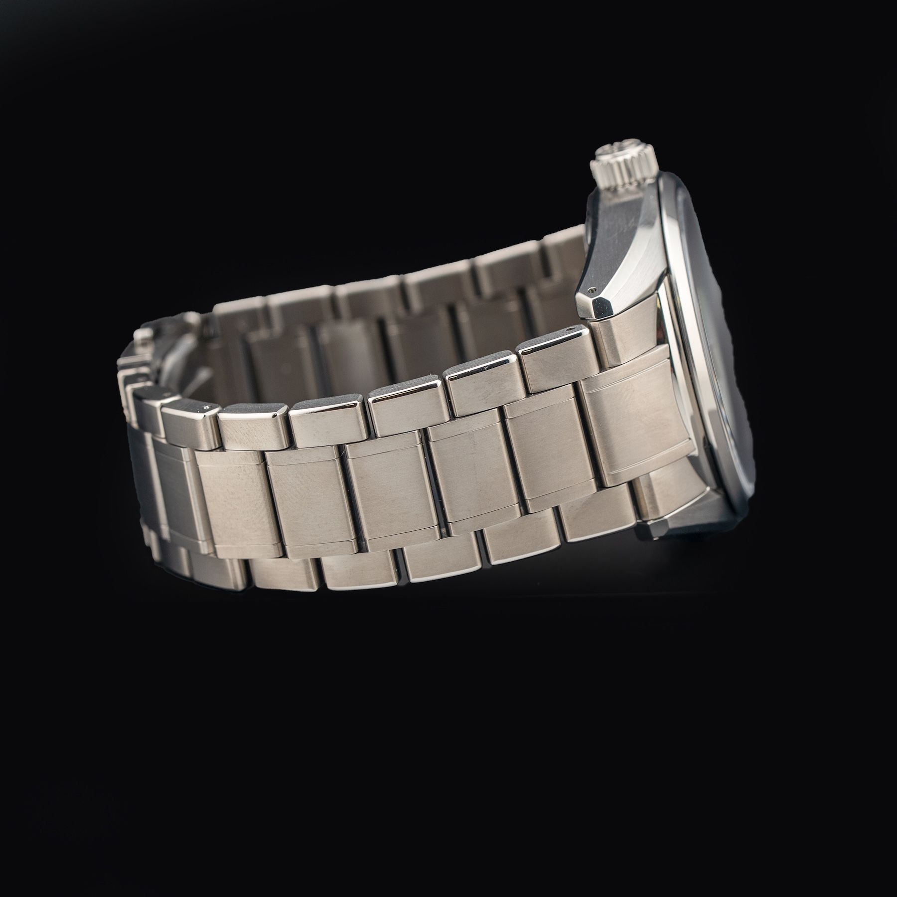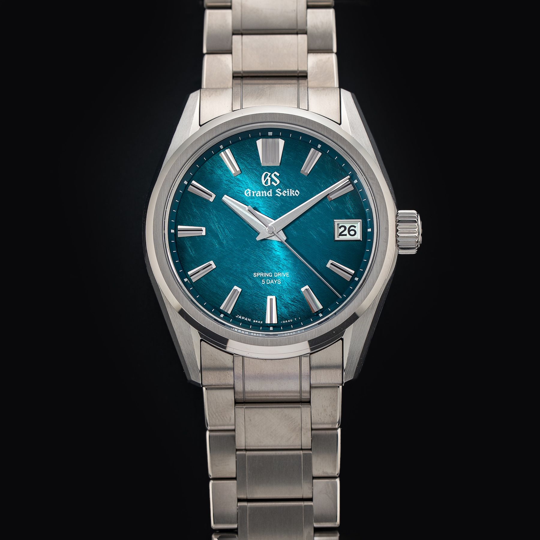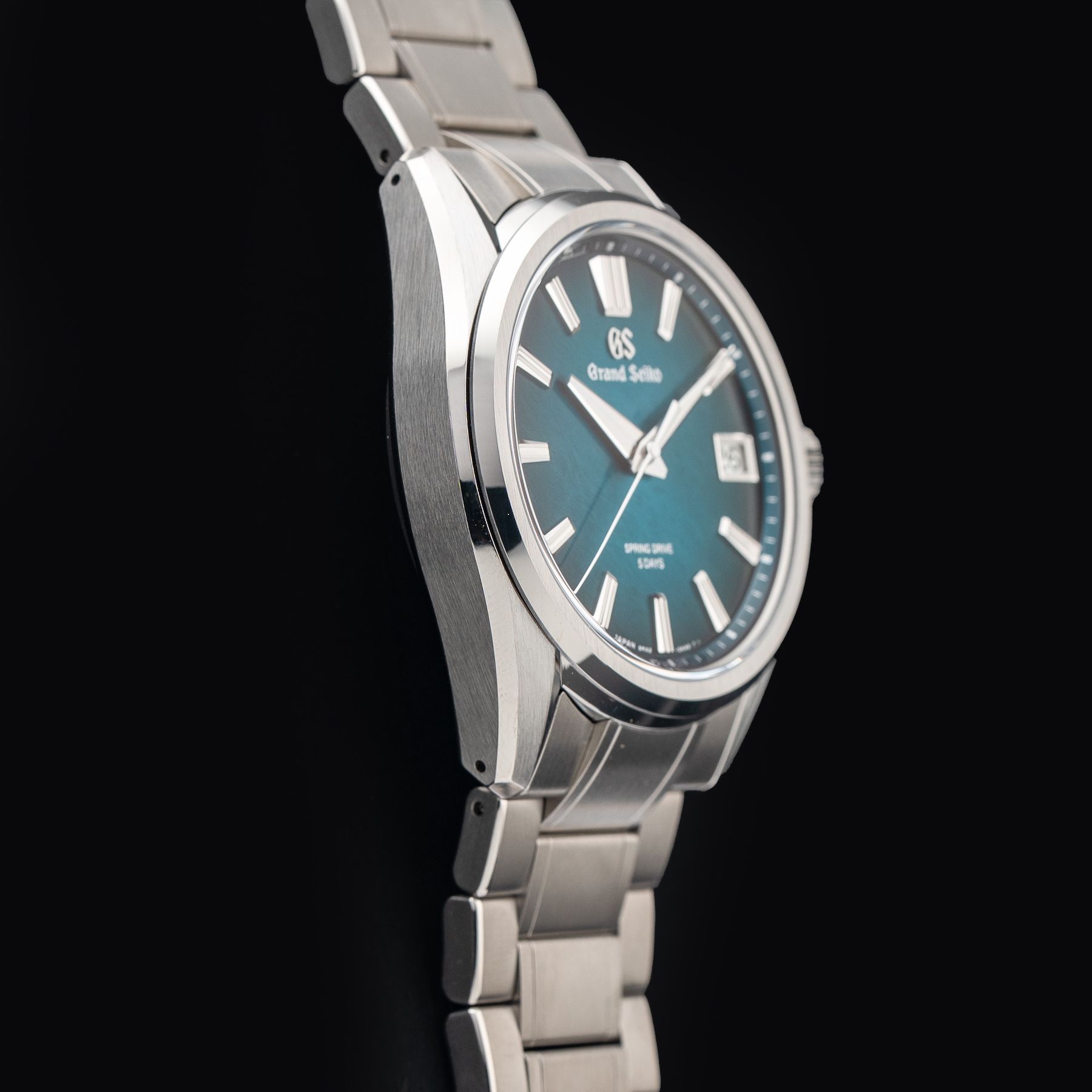 This watch features a 40mm titanium case on titanium bracelet. This watch also sports a blue dial. Powered by a spring drive movement. Water resistance up to 100 meters.