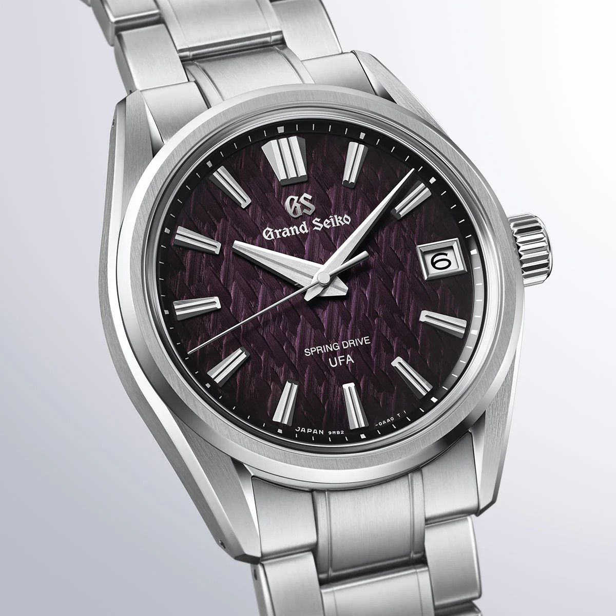 The SLGB005 Ice Forest “Violet Dawn” draws inspiration from the frost-covered forests of Shinshu, where the first light of day casts a soft violet glow across the landscape. The dial’s crystalline texture, created through refined finishing techniques, reflects this natural scene as it gradually brightens toward the center. Against this backdrop, the silver-toned seconds hand glides smoothly, a signature of Spring Drive that mirrors the quiet passage of time.