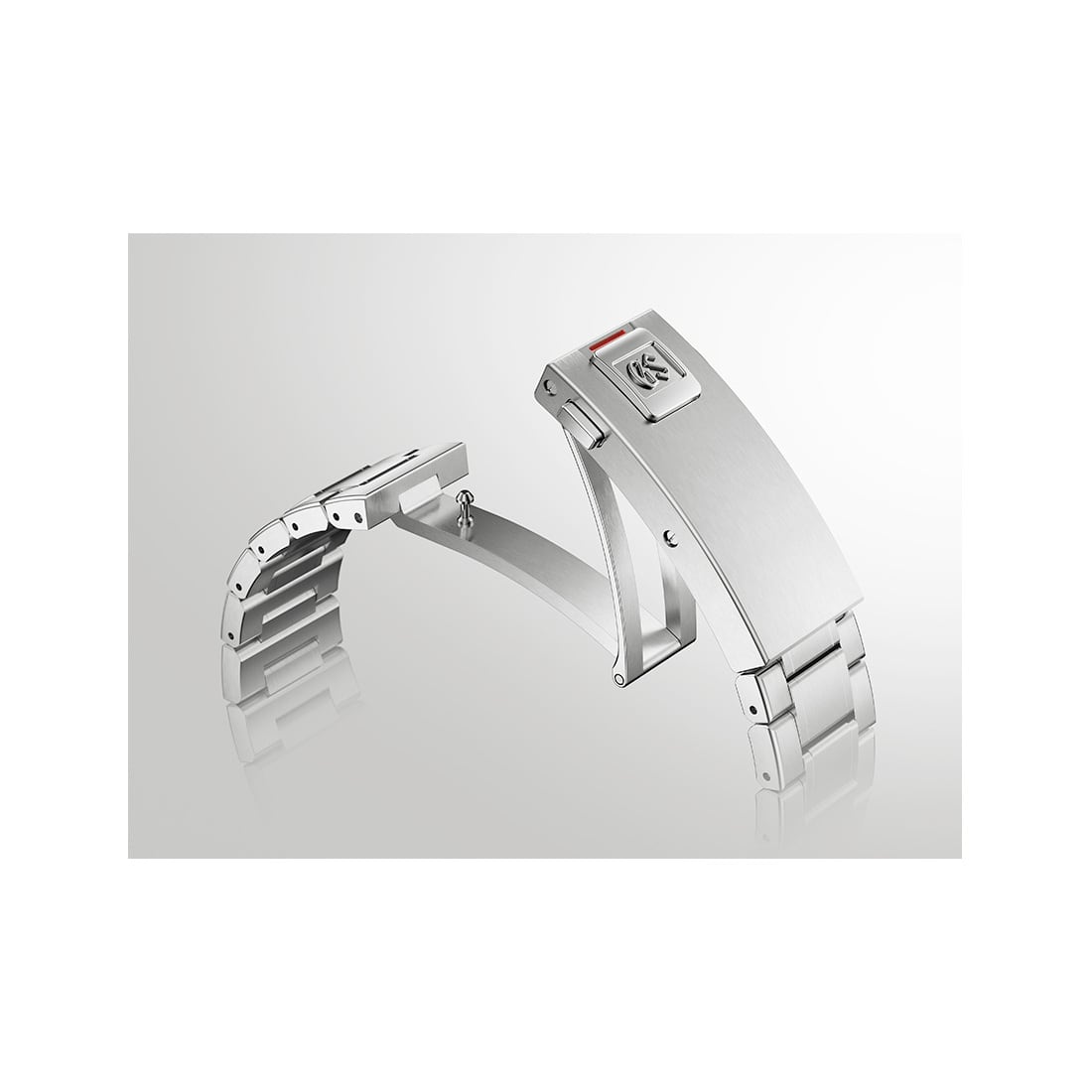 The bracelet includes a locking extension clasp with micro-adjustment. In addition to a three-step micro-adjustment that allows for up to 6 mm of fine-tuning, the extension feature, designed to be used with a diving suit, enables an additional 18 mm, for providing a total of 24 mm of adjustment.