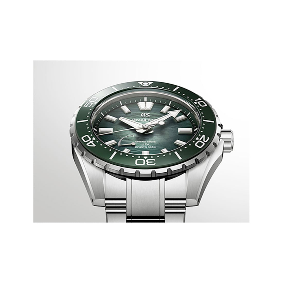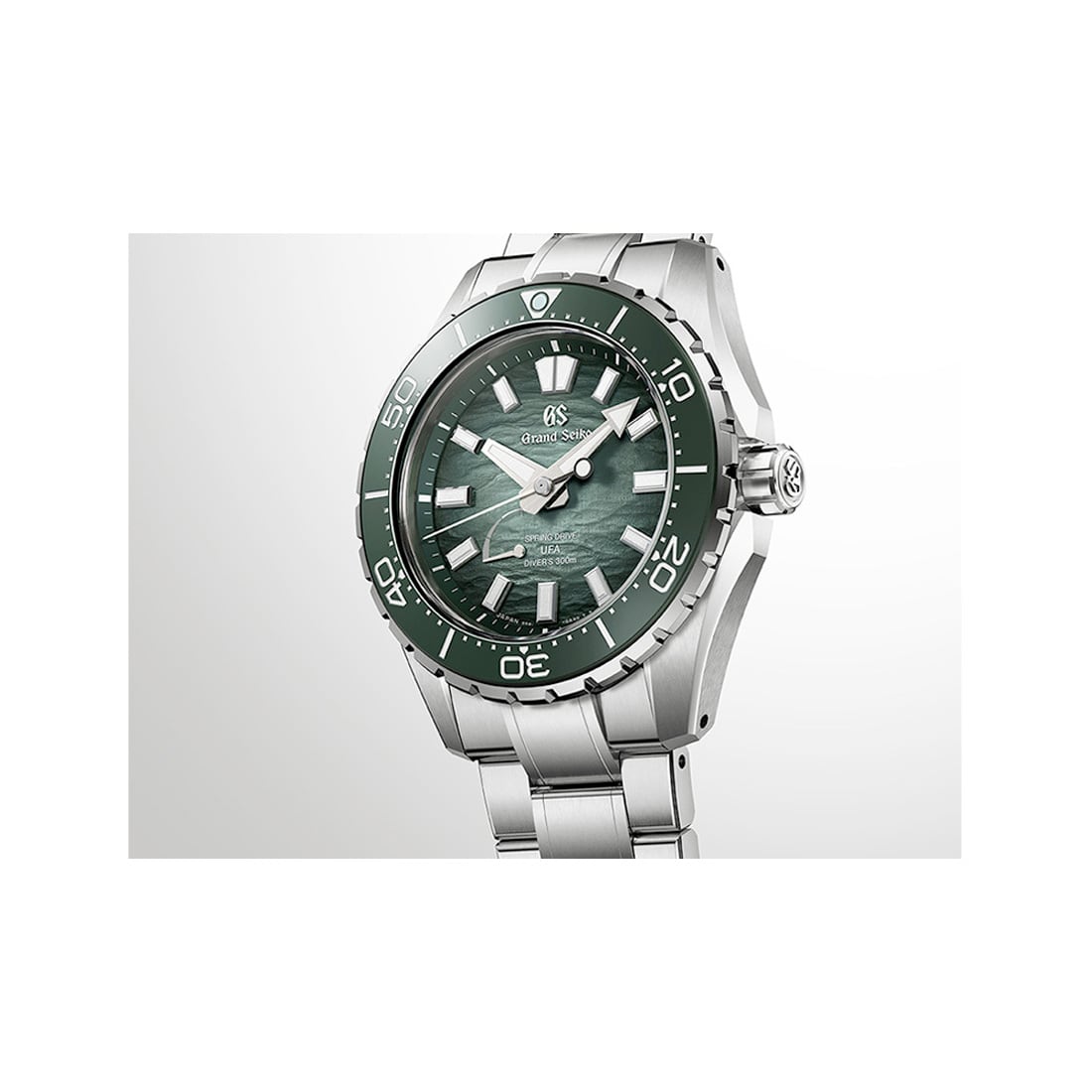 The watch showcases a new green variation of the “Ushio” dial, a design theme that has been part of the Grand Seiko diver’s watch since 2022. The term ushio, which means “tide” in Japanese, evokes the waters that surround the Japanese archipelago, a timeless source of inspiration in Japan’s culture and art. Combined with a gradient design, the vivid dial color emphasizes the “Ushio” pattern while ensuring the excellent legibility for which Grand Seiko divers are renowned. The green dial draws from the tranquil beauty of shallow coastal waters near the shore.