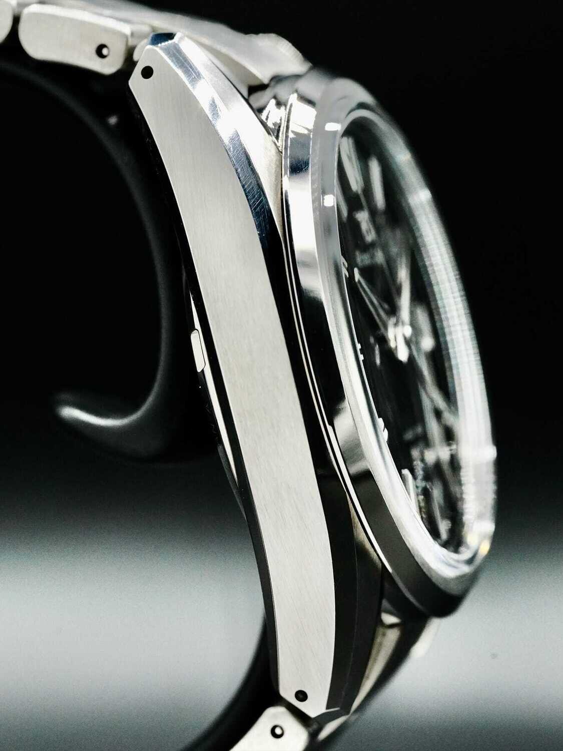 This watch features a 40 mm titanium case and bracelet. This watch also sports a black dial. Powered by a mechanical automatic movement. Water resistance up to 100 meters.