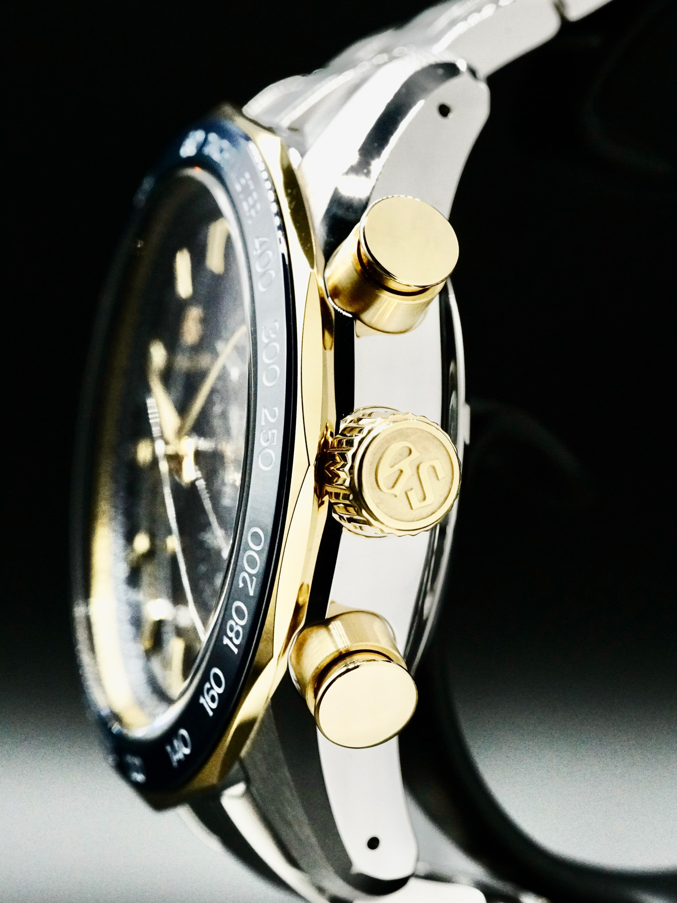 This powerful watch allies all the high functionality of the Spring Drive Chronograph Caliber 9R86 with a uniquely ‘go-anywhere’ design and a new combination of materials. The result is a timepiece of rare refinement. The case is stainless steel, the bezel is in gold tone and catches the eye immediately with its dodecahedron shape, and the buttons are made of 18k yellow gold. Thanks to this combination of materials, it is both strikingly beautiful and highly durable. Furthermore, this may well be the world's most accurate spring-driven chronograph, with a precision of ±15 seconds a month, or ±1 second a day.