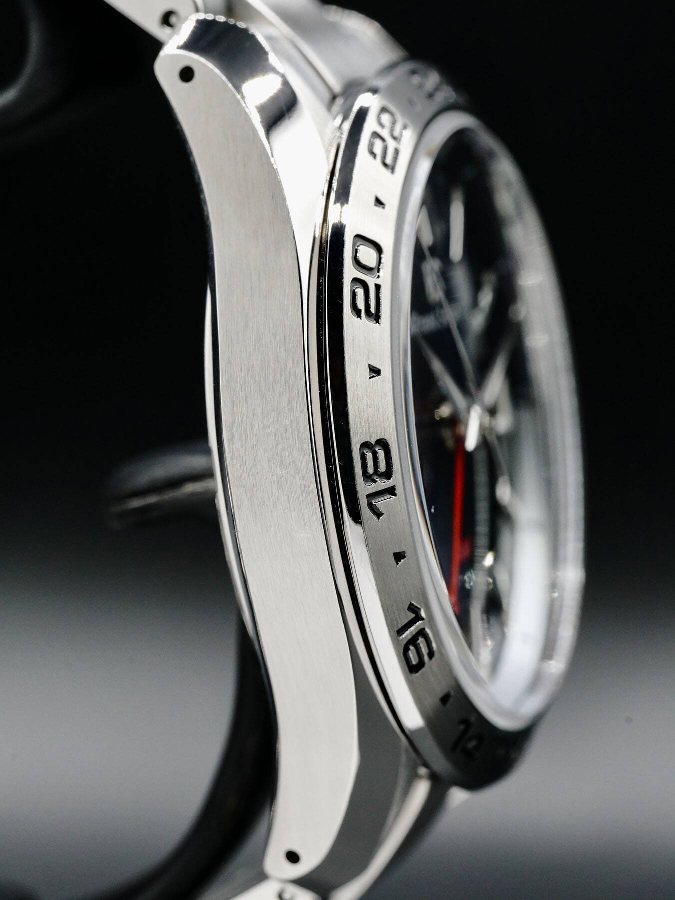 This Grand Seiko Sports GMT features a 39mm stainless steel case & bezel with a solid case back on a stainless steel bracelet. This watch also showcases a blue dial with luminous hands and dial markers covered by scratch resistant sapphire crystal.