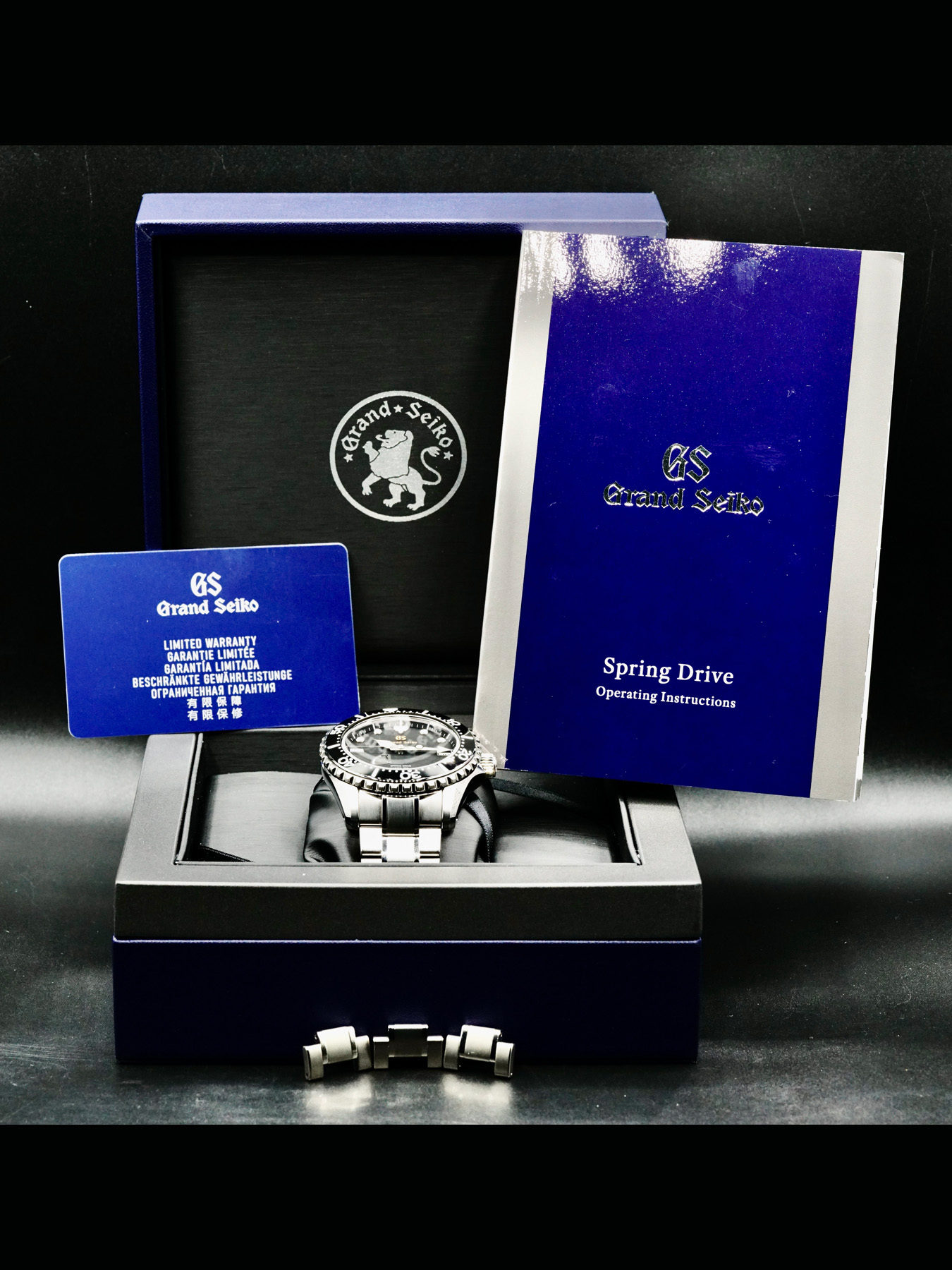 This Grand Seiko Sports SBGA463 is in EXCELLENT condition. It has boxes and papers. Limited warranty dated for May 2022. Extra stainless steel bracelet links.