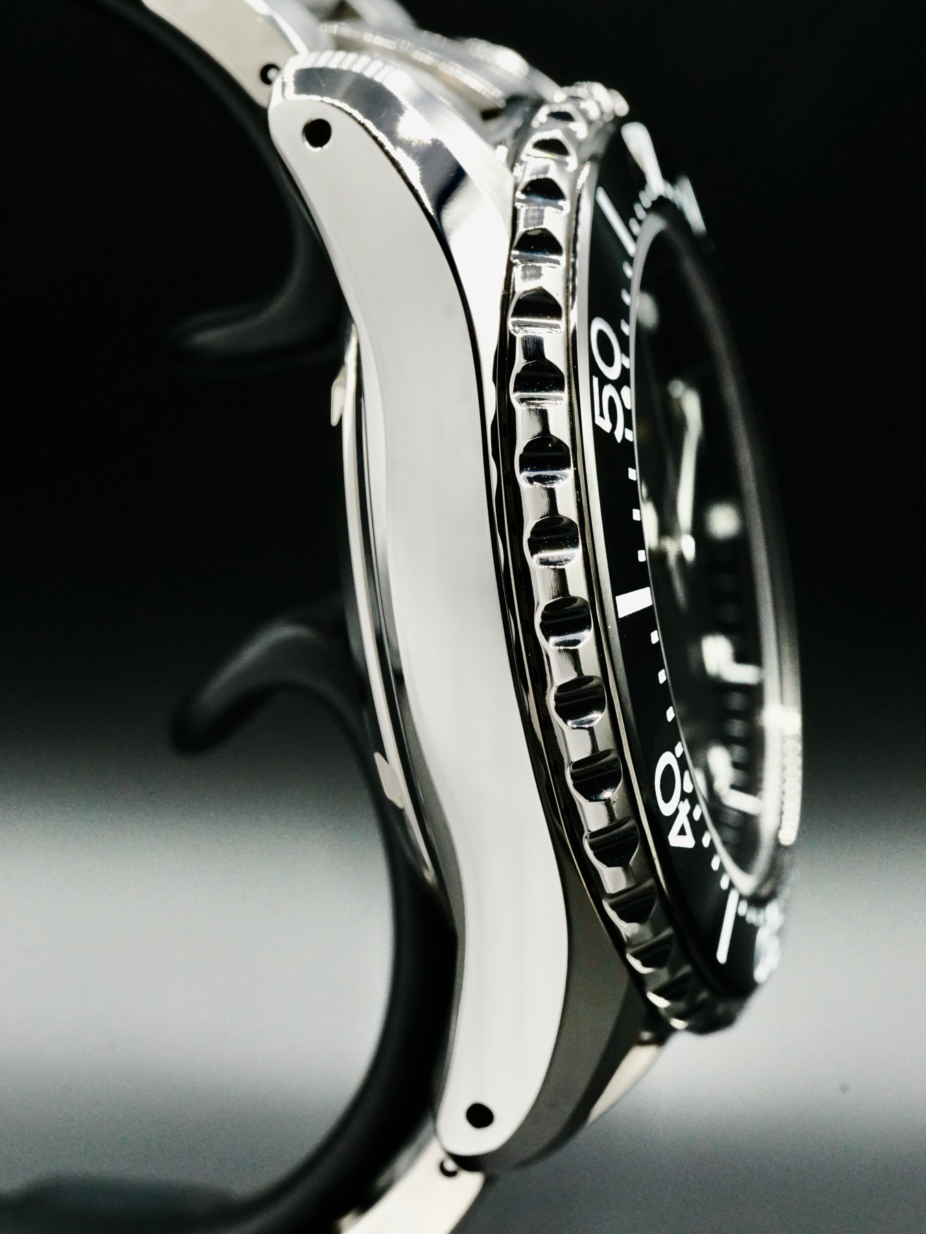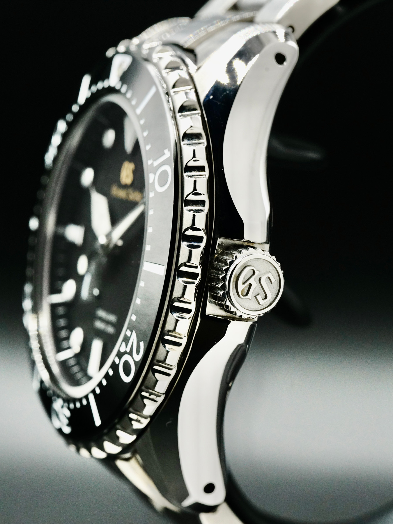 This Grand Seiko Sports SBGA463 features a 44mm titanium case on titanium bracelet. This watch also sports a black dial.