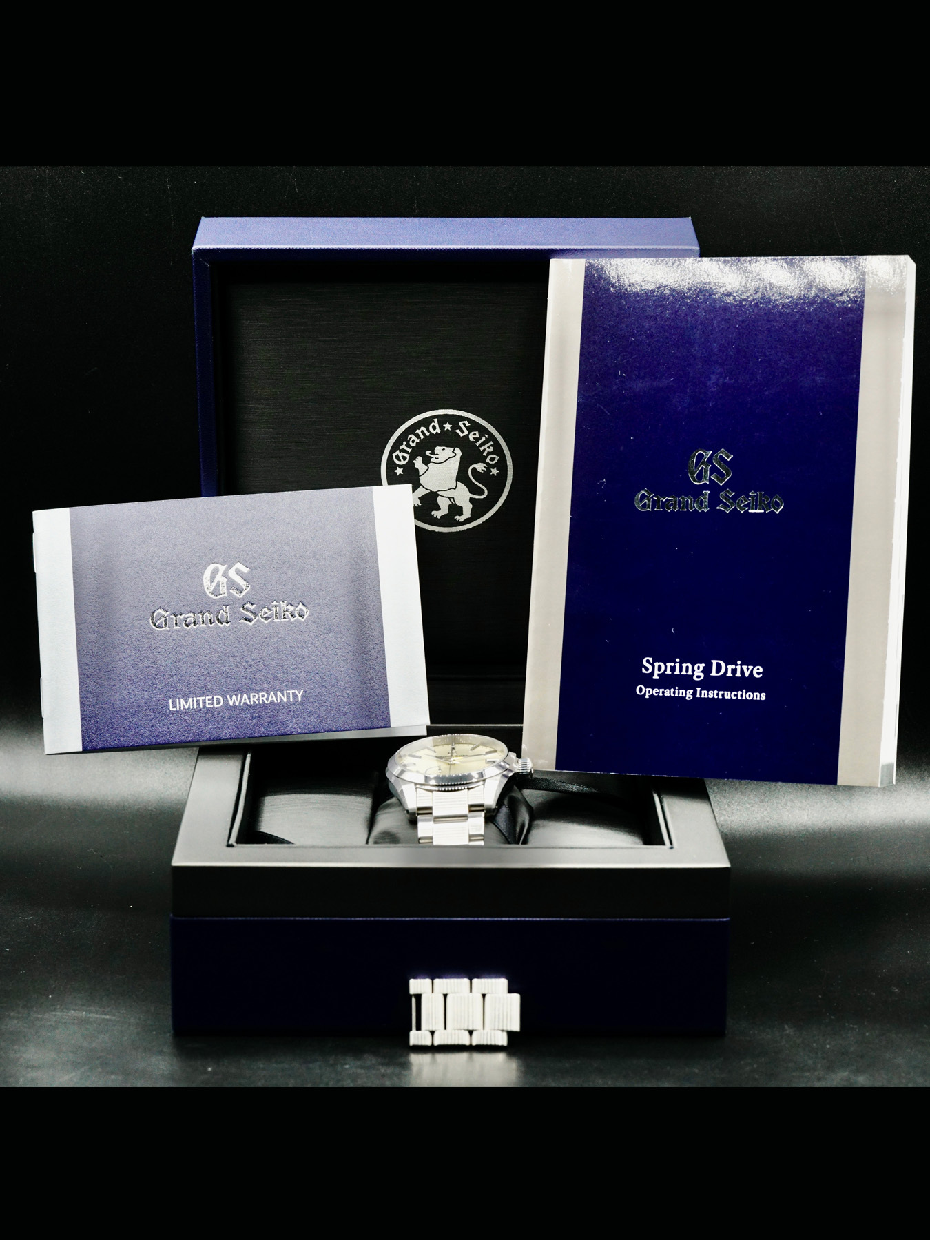 This Grand Seiko SBGA283 Spring Drive Champagne Dial is in GREAT condition. it has boxes and papers. Limited warranty dated for March 2021. Extra stainless steel bracelet links.