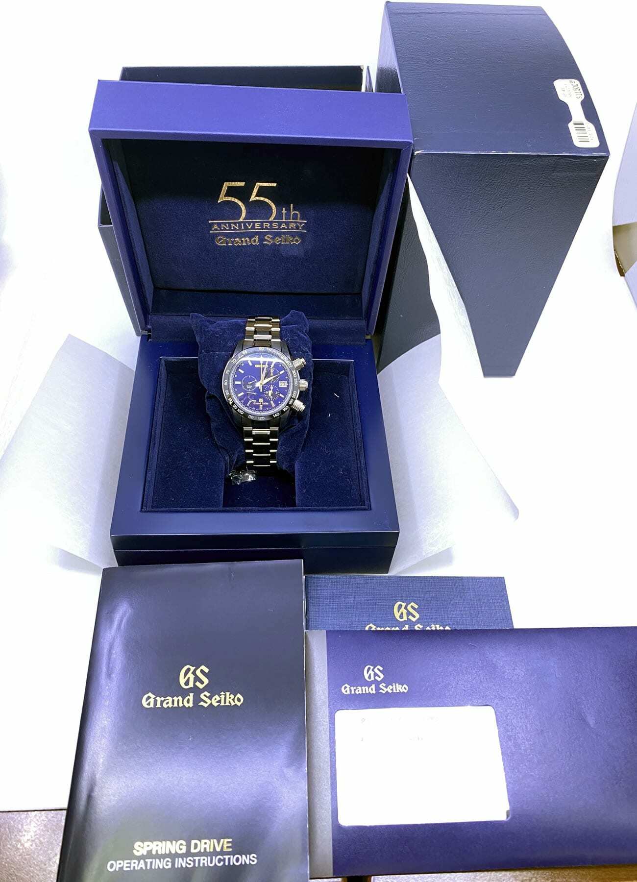 - This timepiece features a 43mm titanium case paired with a high quality titanium bracelet. It showcases a distinctive blue dial and is powered by a precise spring drive winding movement. The watch is designed with a water resistance of up to 100m.