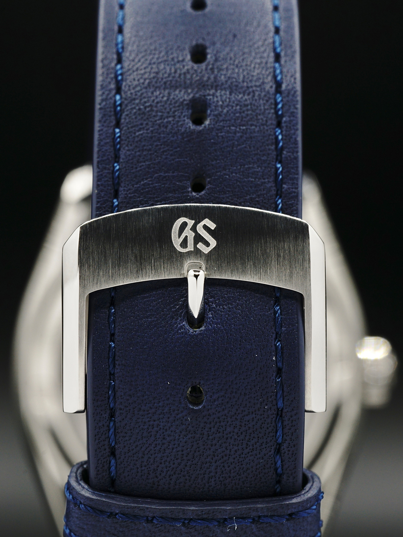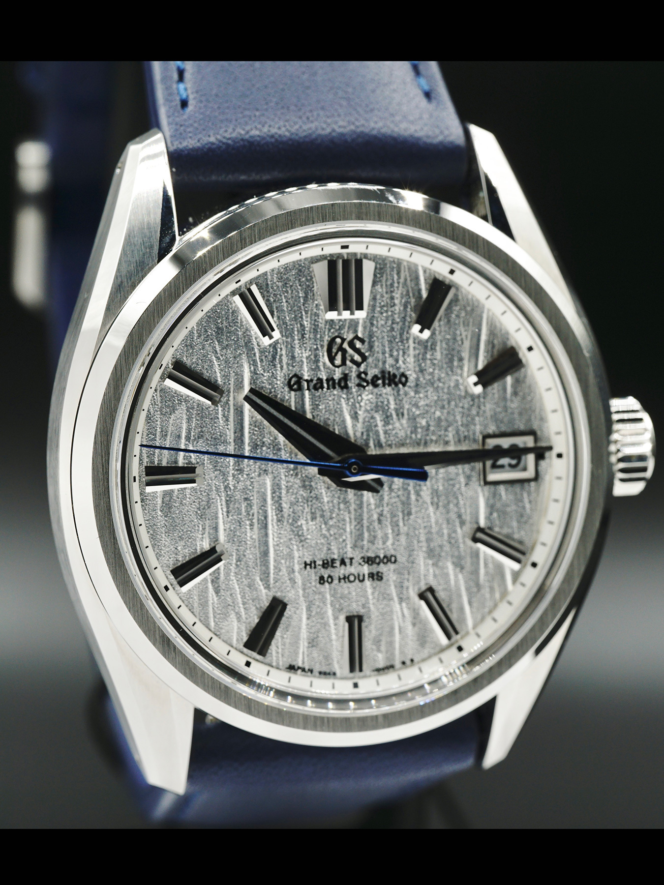 The overall look of the watch is known as the Series 9 Design and it will be an important part of the Grand Seiko’s signature in the years to come. Its powerful hands and grooved, prominent markers ensure perfect legibility, its Zaratsu polished, distortion-free mirror finish and delicate hairline finish alternate give the case a quiet and harmonious glow. The case has wide lugs and a low center of gravity that ensures that the watch sits easily and securely on the wrist.