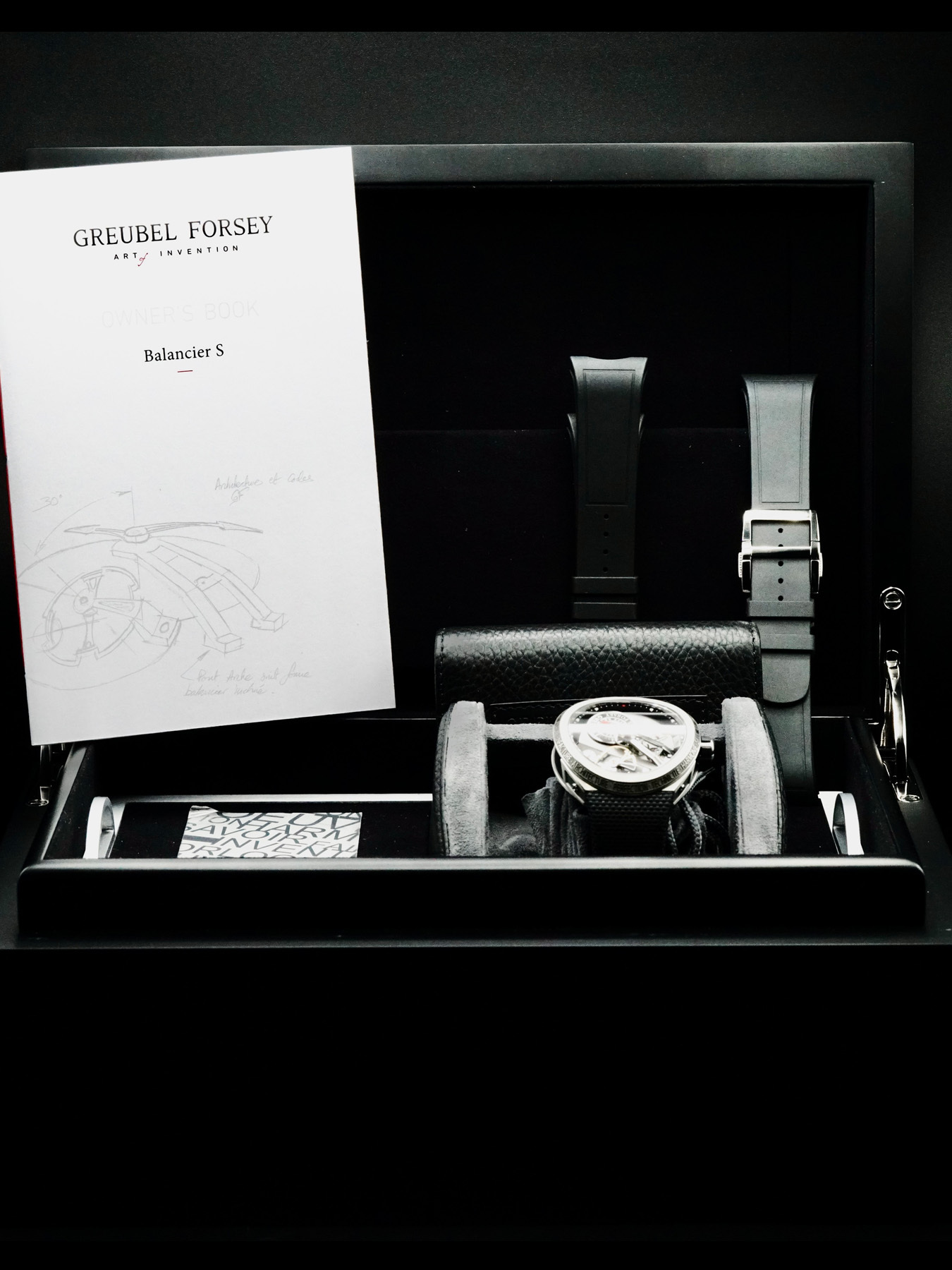 This Greubel Forsey Balancier S Limited Edition is in EXCELLENT condition. This watch includes its original box, instructions, and warranty dated for December 2021. Two extra black rubber straps. This watch has been fully authenticated and certified by Exquisite Timepieces. Limited Edition of 18 pieces!