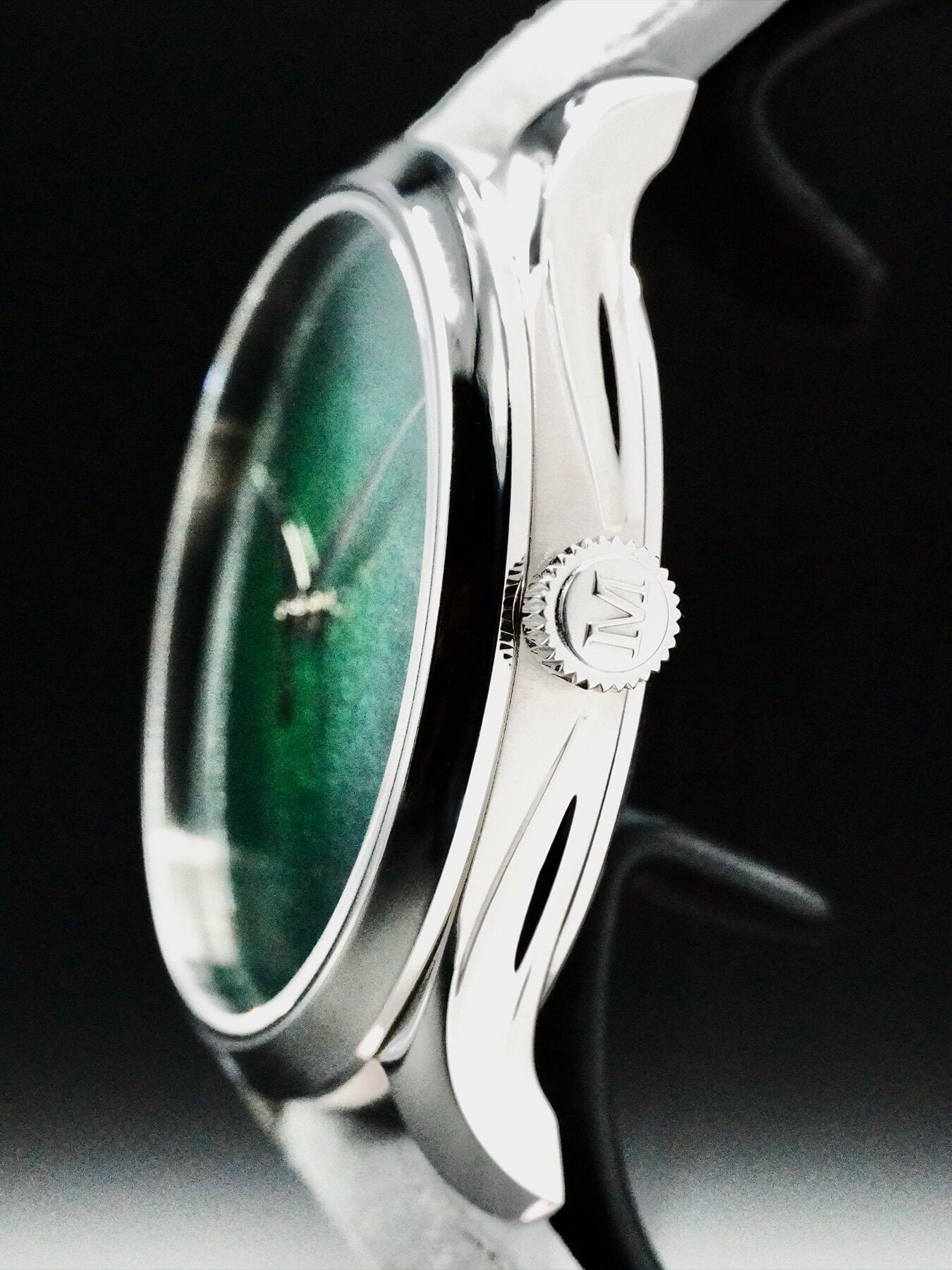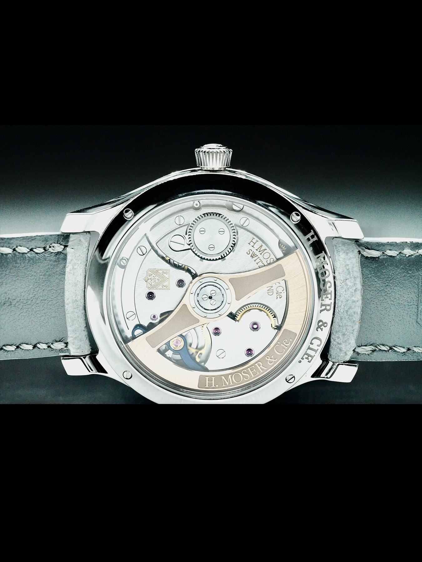 Mechanical Automatic movement powered by H. Moser & Cie. Caliber HMC200. Water resistant up to 30 meters.