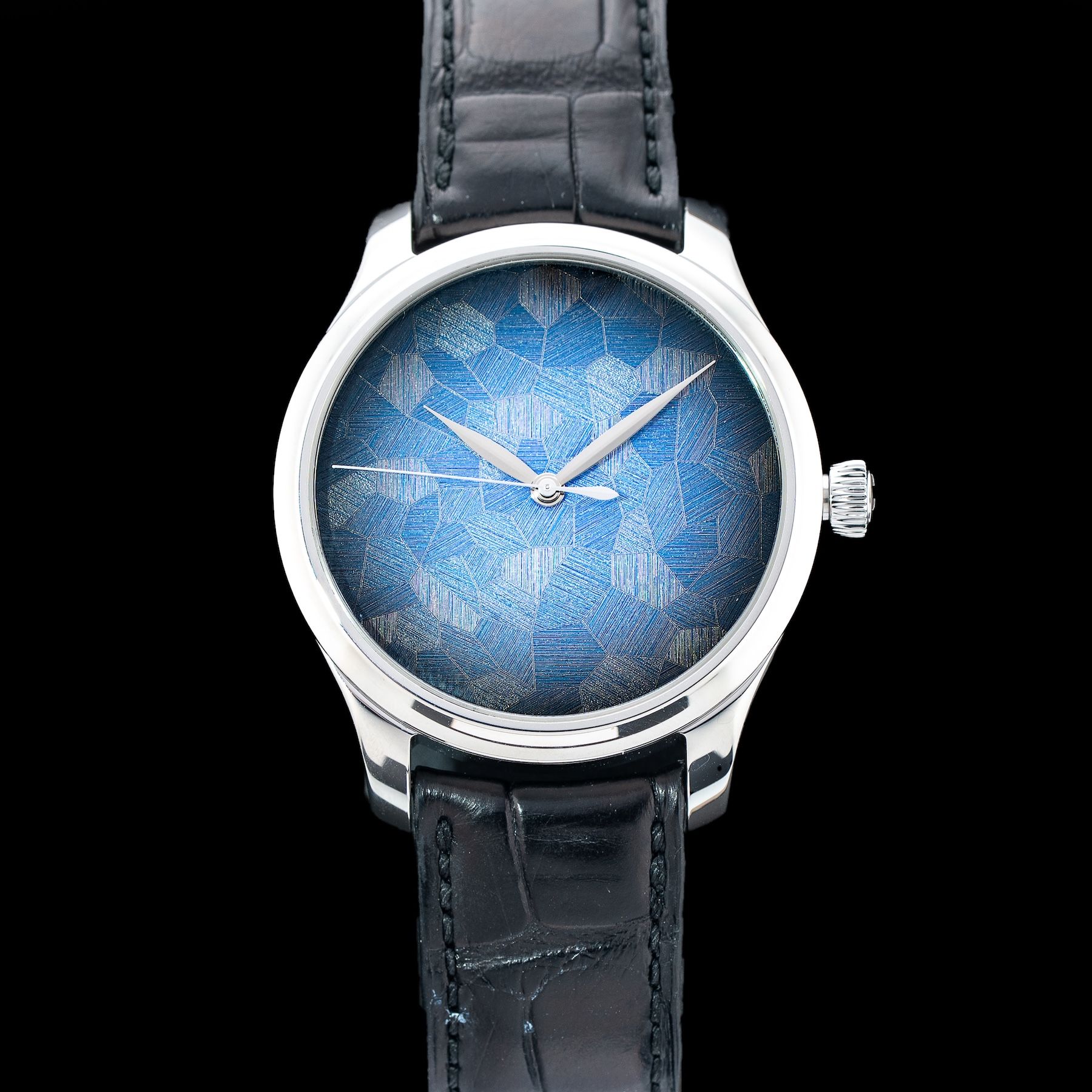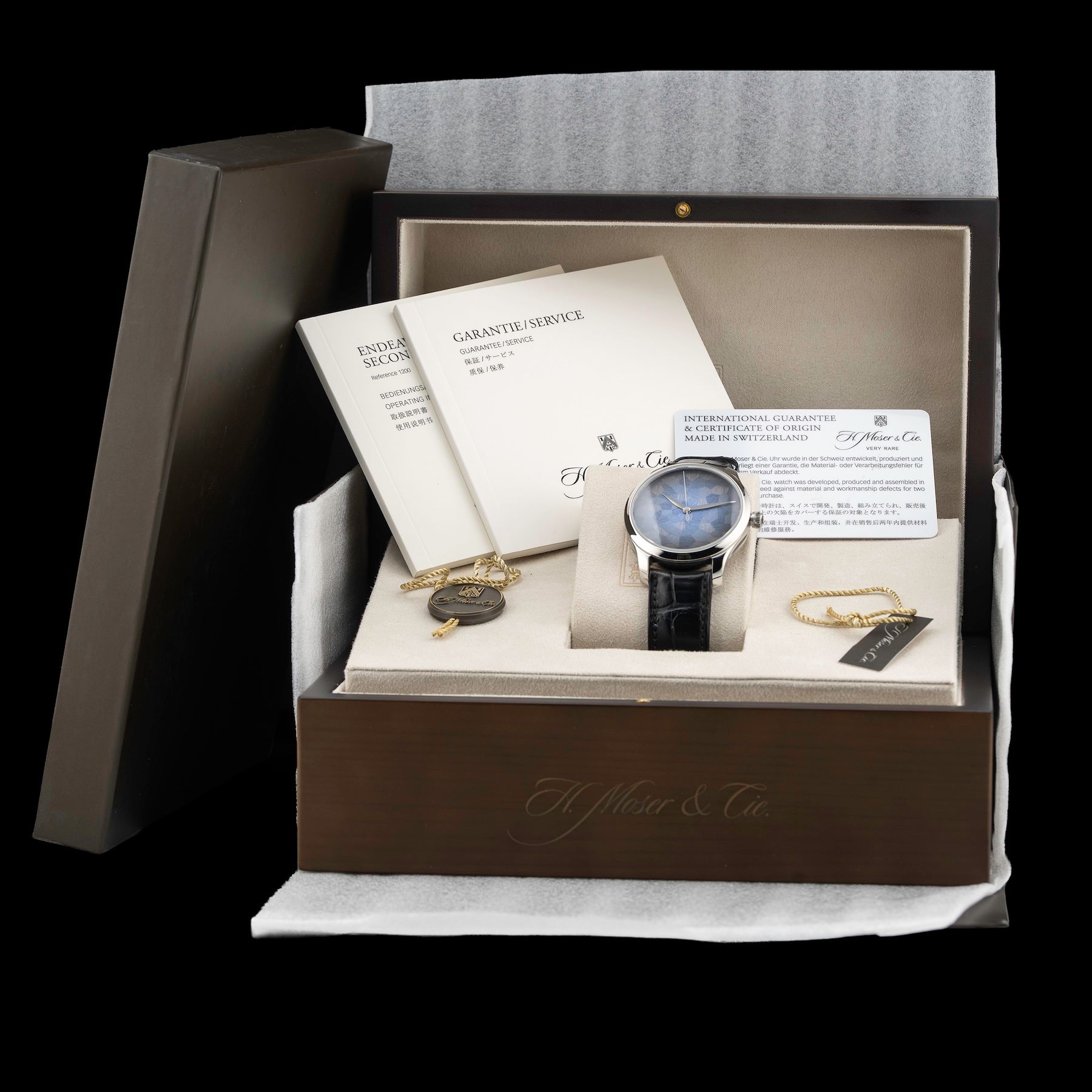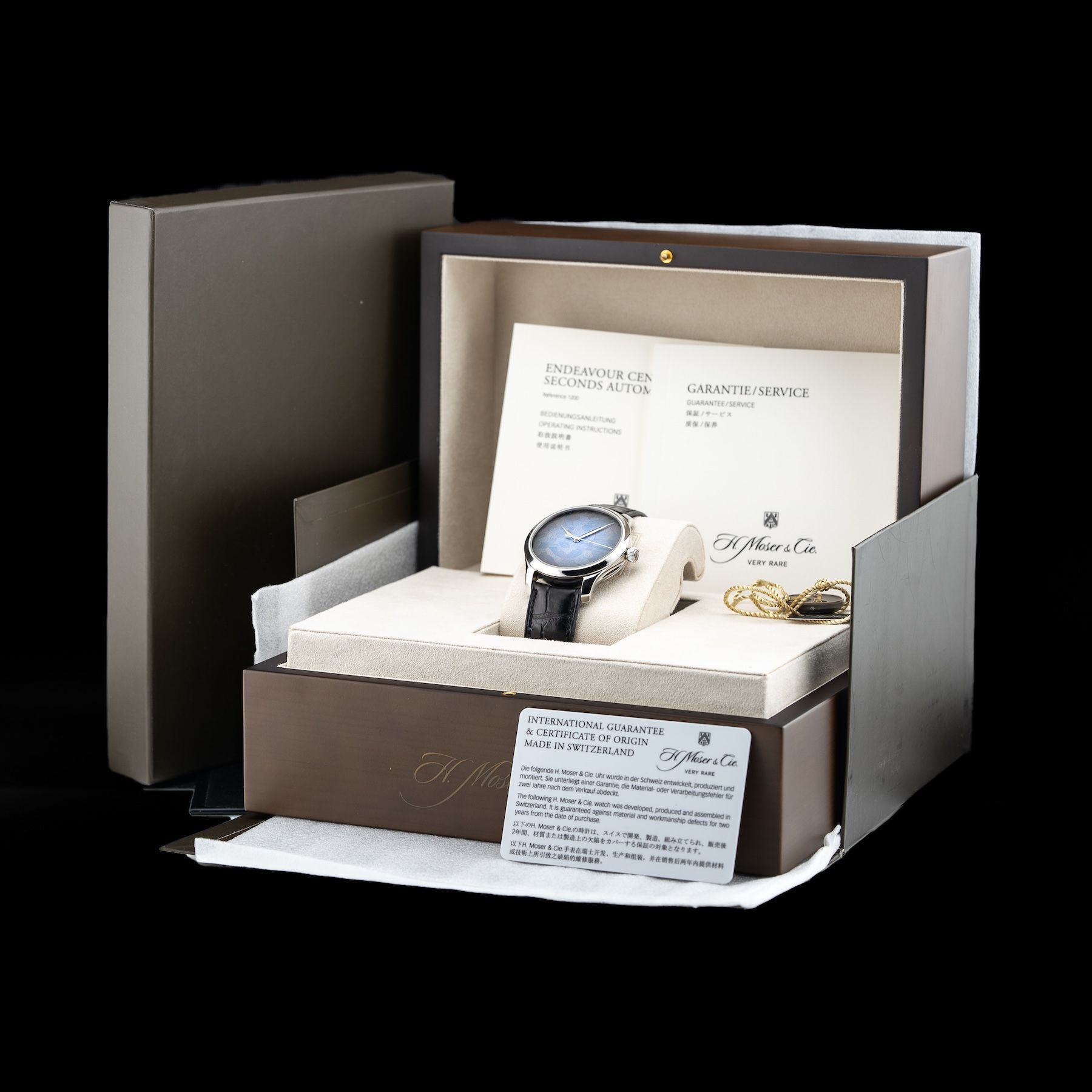 This H. Moser & Cie. 1200-1220 Endeavour Centre Seconds Blue Mosaic Dial is in GREAT condition. This watch includes its Original Box, Original Papers and Warranty Card Dated 01/13/2022. This watch has been fully authenticated and certified by Exquisite Timepieces. Please note, the photos shown are of the actual watch you will receive.