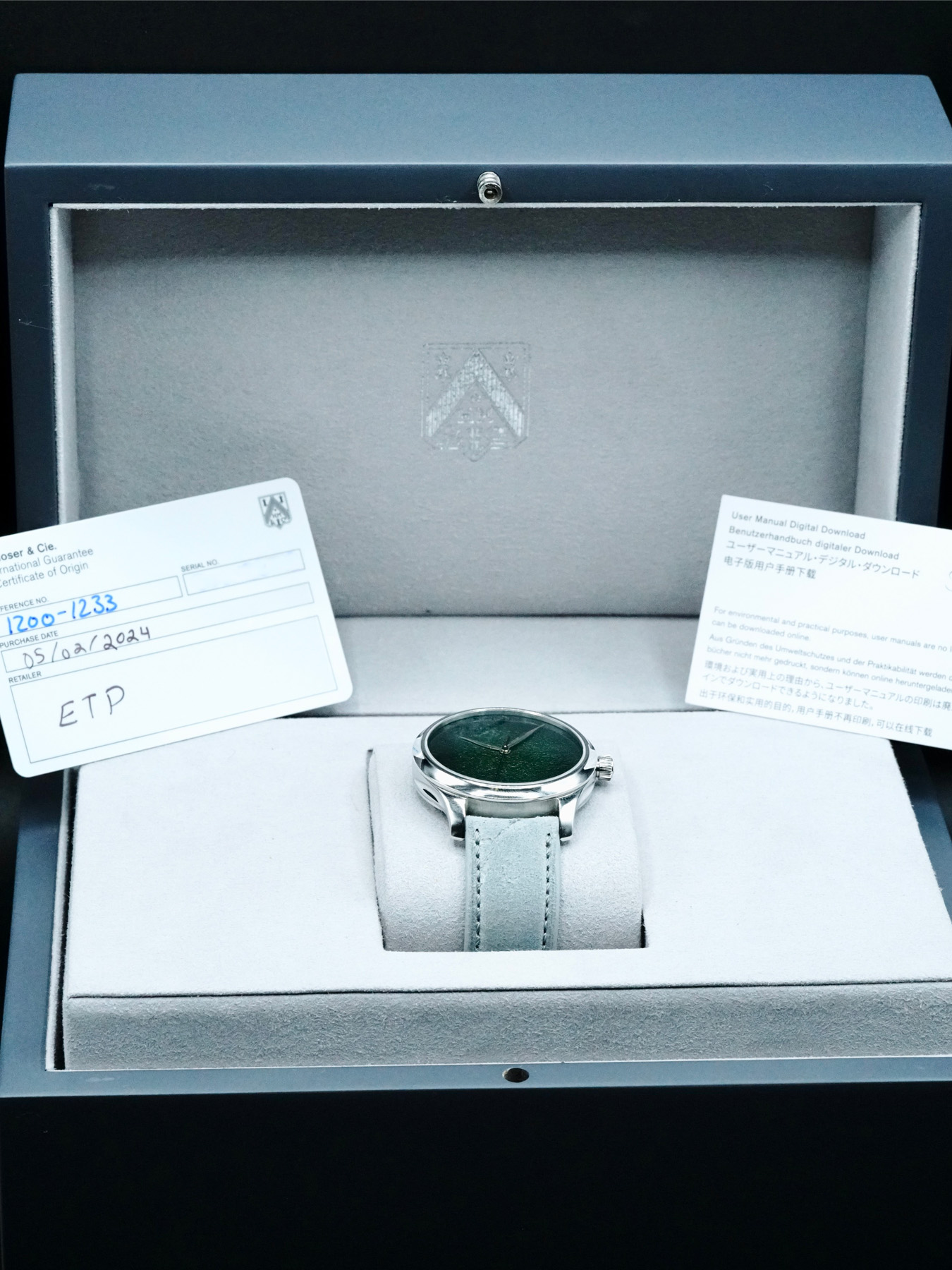 This H. Moser & Cie. 1200-1233 Endeavour Centre Seconds Concept Lime Green is in GREAT condition. This watch includes its Original Box, Original Papers and Warranty Card 05/02/2024. This watch has been fully authenticated and certified by Exquisite Timepieces.
