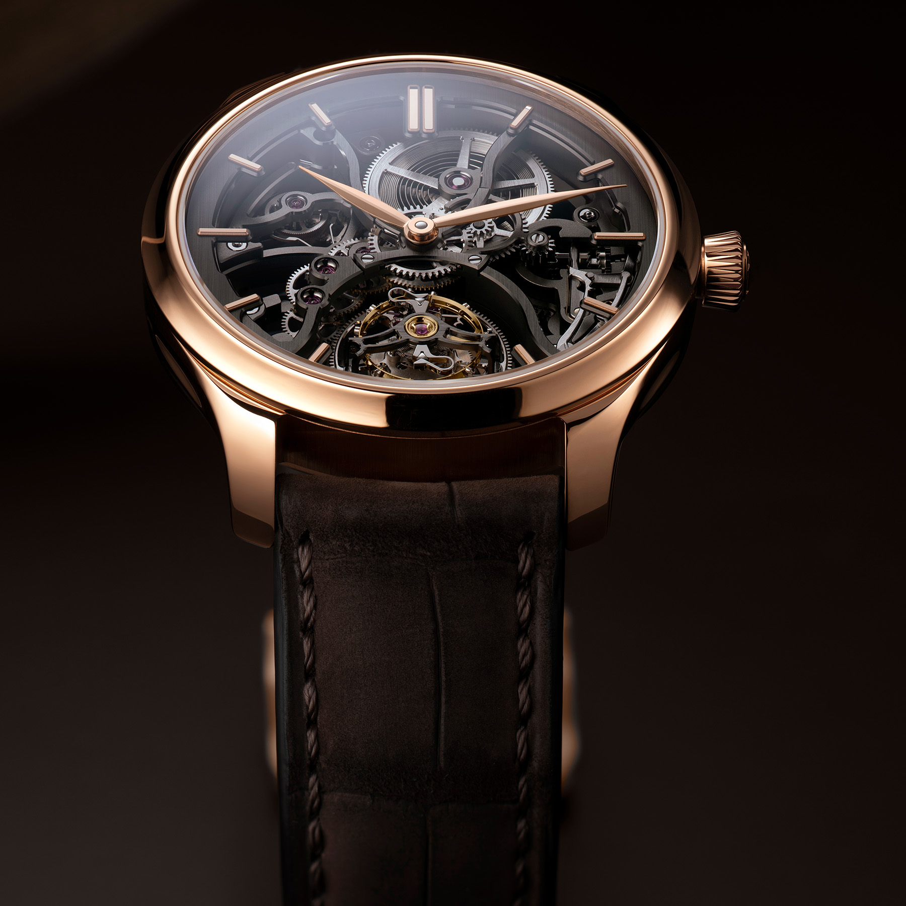 An expression of our minimalist philosophy, pushed to the limit. The Endeavour Tourbillon Skeleton is fully openworked, stripped back to what’s essential and nothing more. Time is driven by a one-minute flying tourbillon with a double hairspring, visible in its entirety. Housed in a 40mm 5N red gold case and powered by the skeletonised HMC 814, this is a watch for those who value subtraction. For whom reduction is the clearest form of revelation.