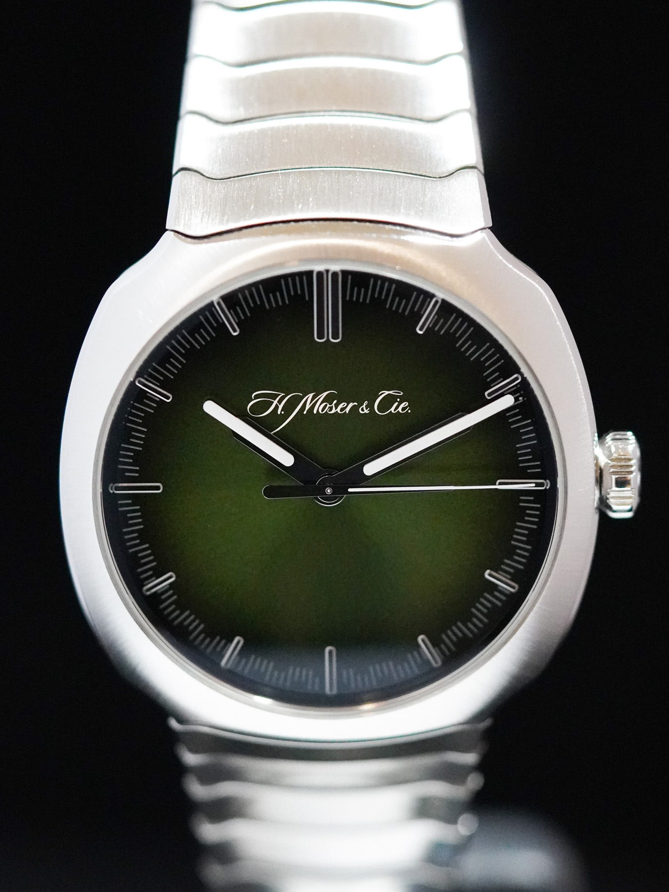This H. Moser & Cie. 6200-1200 Streamliner Green Dial is in GREAT condition. This watch includes its Original Box, Original Papers and Warranty Card Dated 8/2020. This watch has been fully authenticated and certified by Exquisite Timepieces.