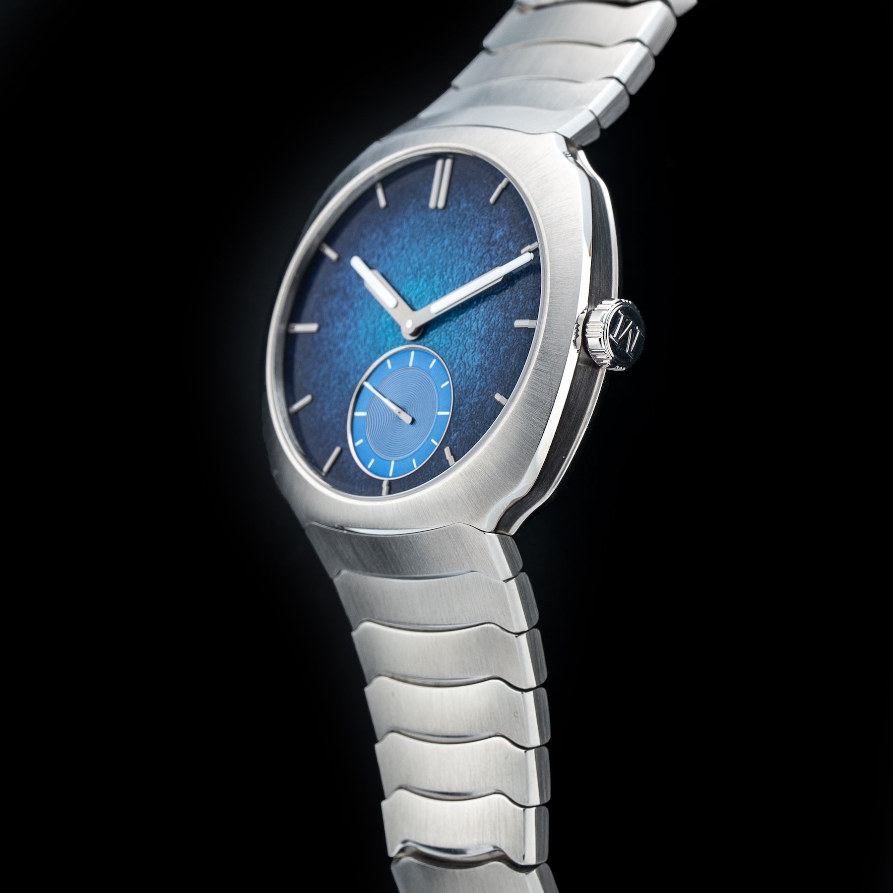 - This timepiece features a 39mm steel case paired with a high quality . It showcases a distinctive blue dial and is powered by a precise automatic winding movement. The watch is designed with a water resistance of up to 100m.