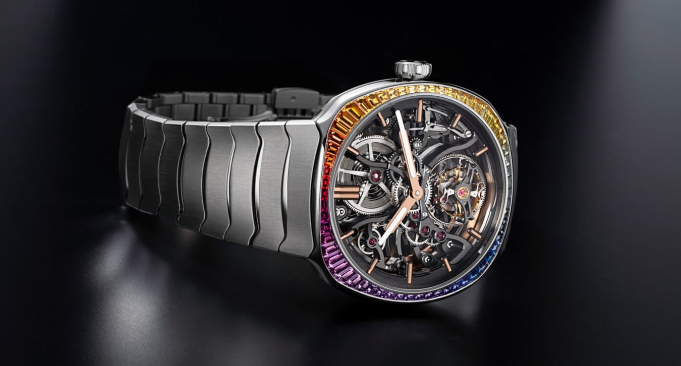 Invisibly set sapphire gemstones light up the Streamliner Tourbillon Skeleton Rainbow, bringing vivid energy to its sleek form. The steel case lends a contemporary edge, allowing the brilliance of the stones and the transparency of the skeletonised movement to take centre stage. With the flying tourbillon — equipped with a double hairspring — seemingly suspended in air, every detail reflects our commitment to purity, precision, and innovation. Striking in design, poetic in spirit — a modern icon, reimagined in the colours of the rainbow.