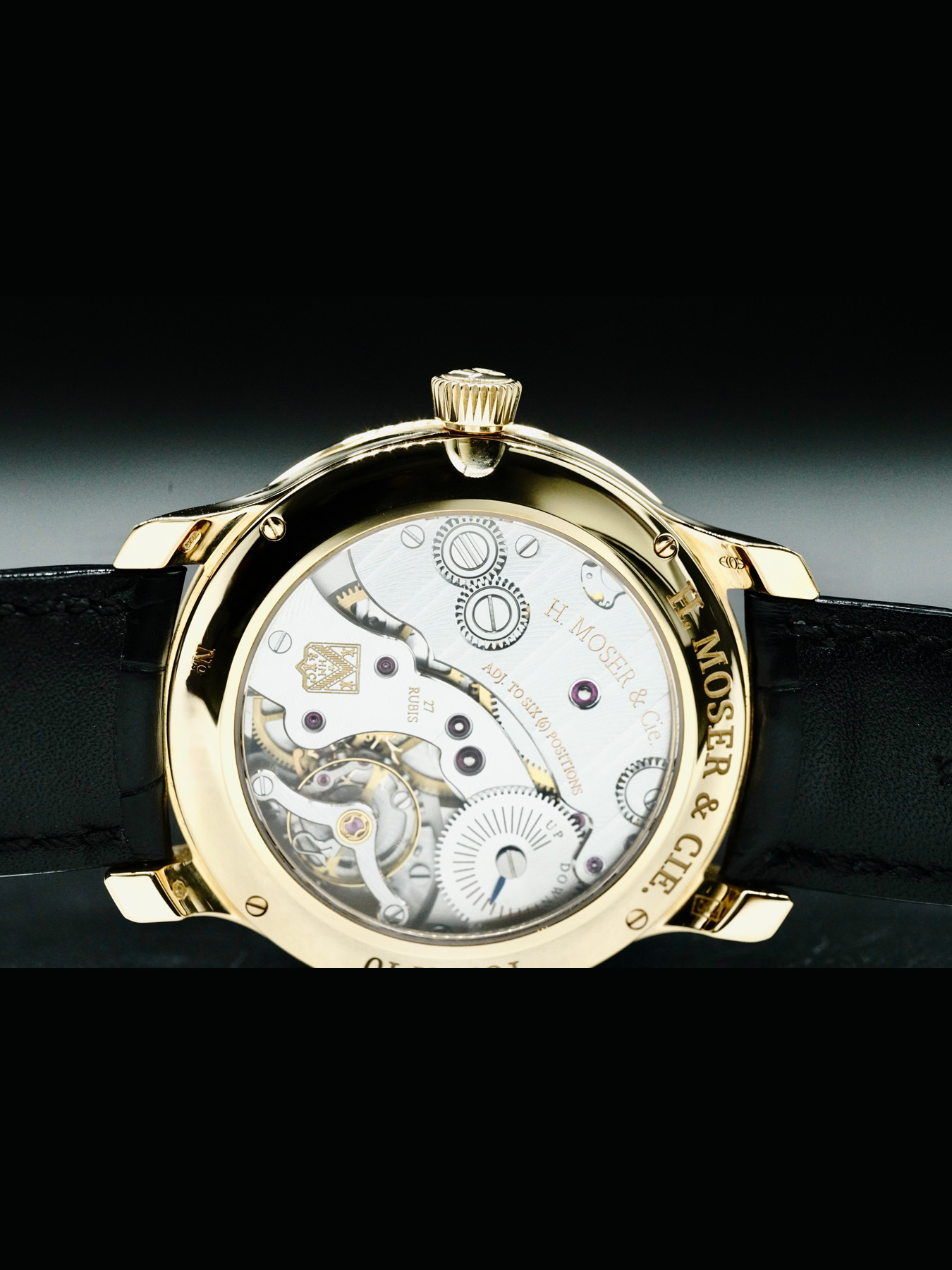 Mechanical Manual Movement powered by H. Moser & Cie. Caliber HMC321. Water resistance up to 30 meters.