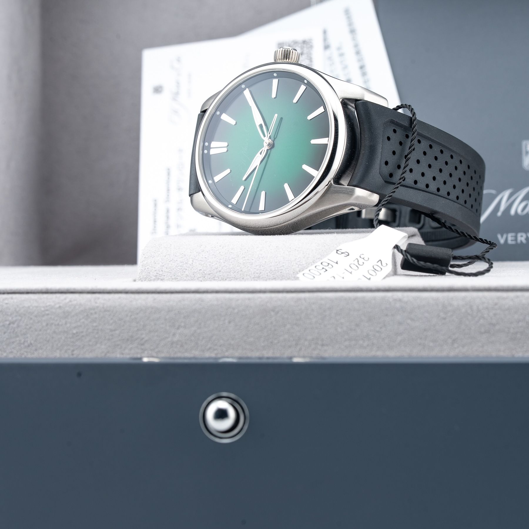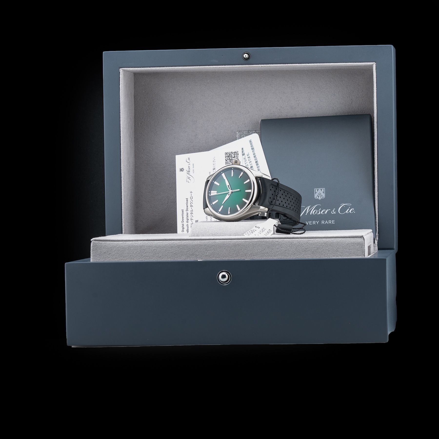This H. Moser & Cie. 3201-1201 Pioneer Centre Seconds Cosmic Green is in GREAT condition. This watch includes its Original Box, Original Papers and Warranty Card Dated 10/21/2024. This watch has been fully authenticated and certified by Exquisite Timepieces. Please note, the photos shown are of the actual watch you will receive.