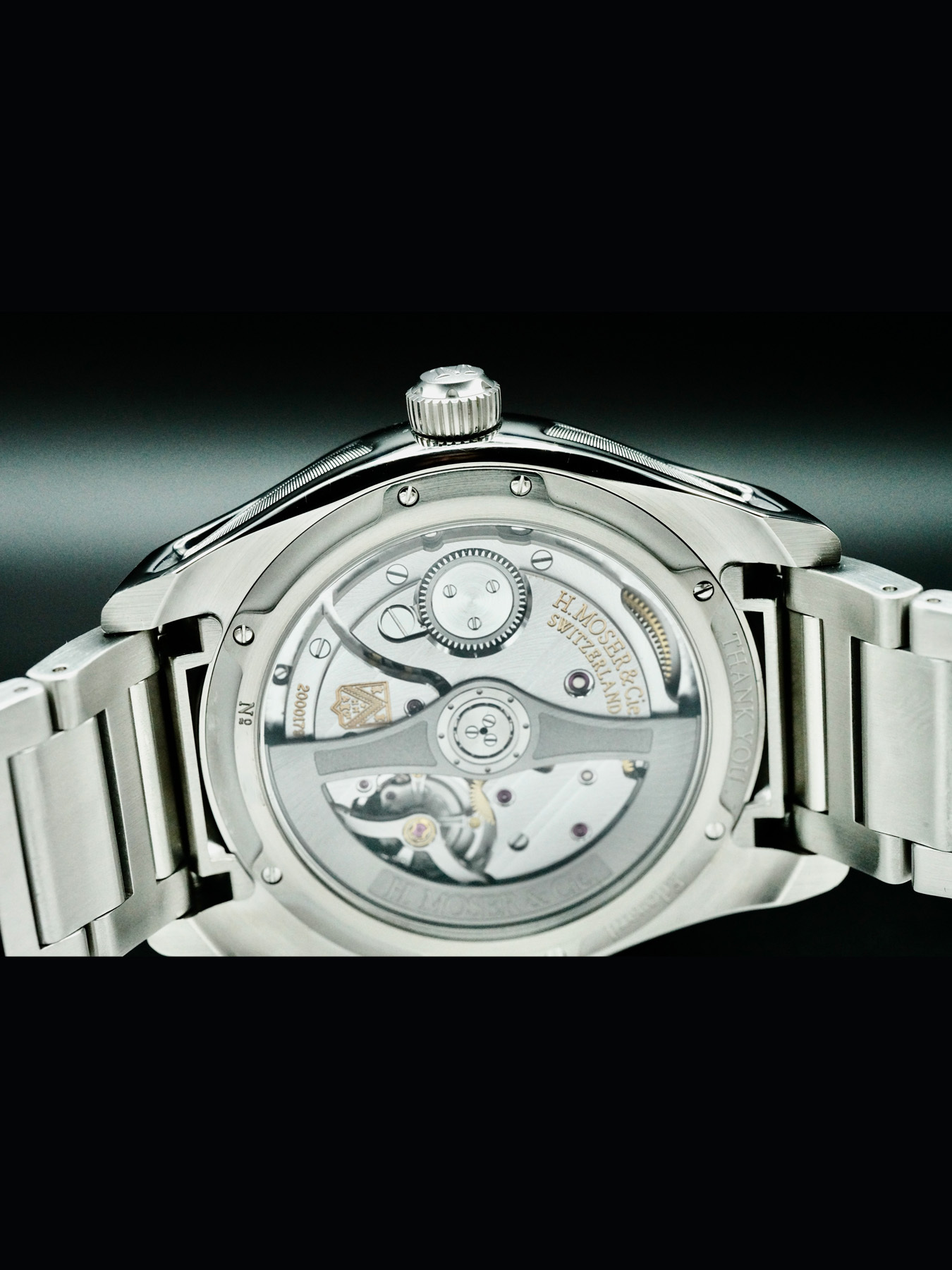 Automatic movement powered by H. Moser & Cie. Calibre HMC 200 with a power reserve of approximately 72 hours. Water resistance up to 120 meters.