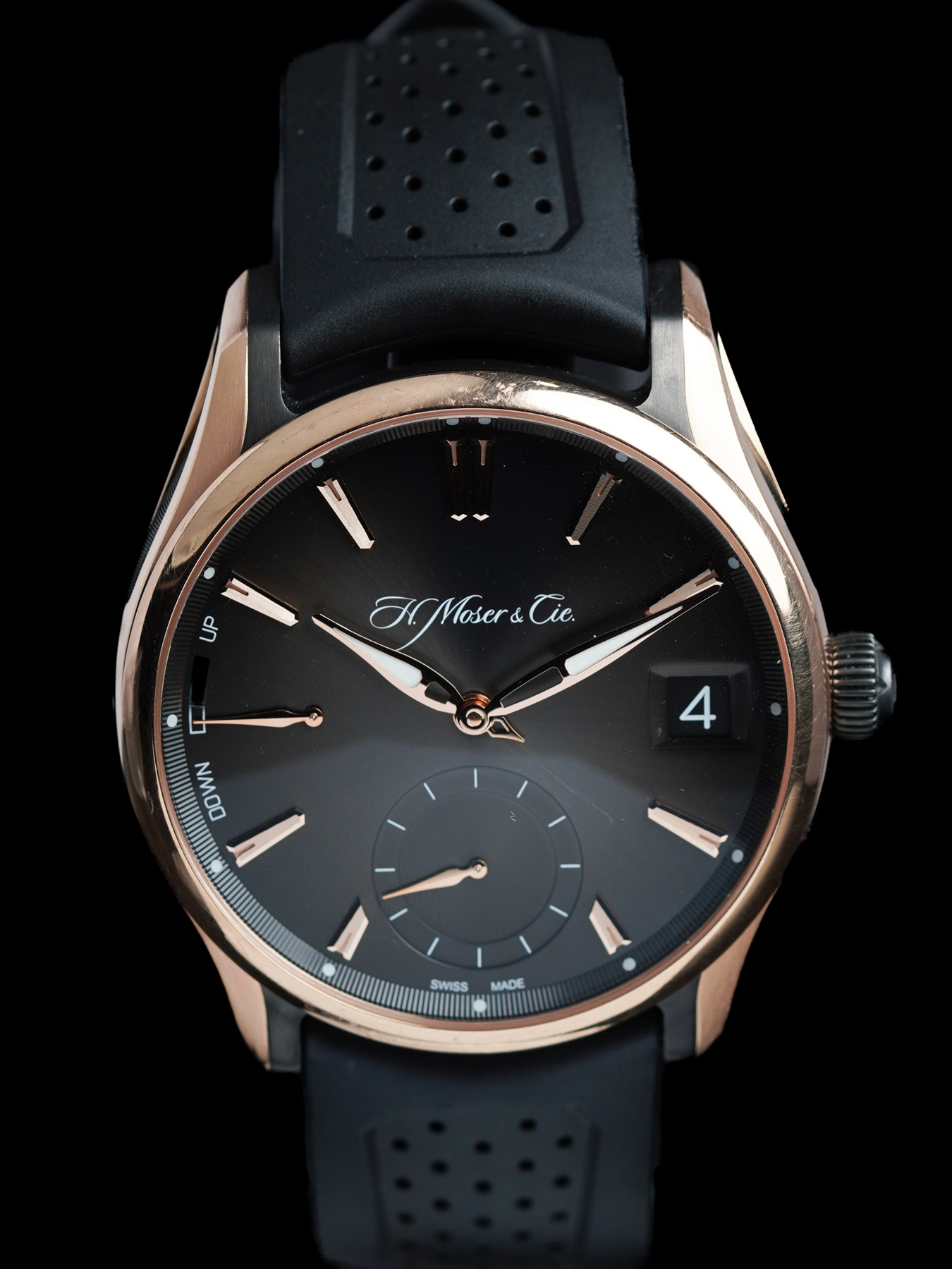 This H. Moser & Cie Pioneer Perpetual Calendar Red Gold Titanium Ardoise Fume Dial 3800-0900 is in EXCELLENT condition. it has box, papers and warranty card not dated.