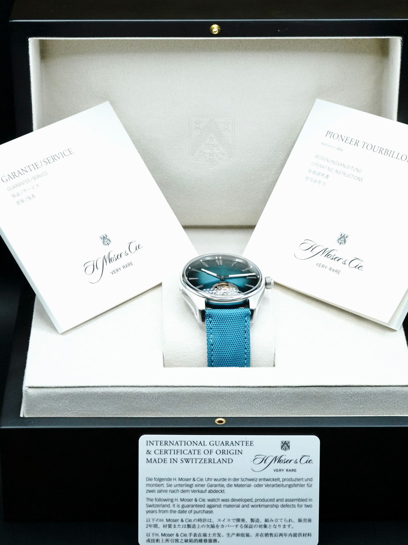 This H. Moser & Cie. Pioneer Tourbillon 3804-1205 is in GREAT condition. This watch includes its original box, original papers, and warranty card dated for 9/25/2021. This watch has been fully authenticated and certified by Exquisite Timepieces.