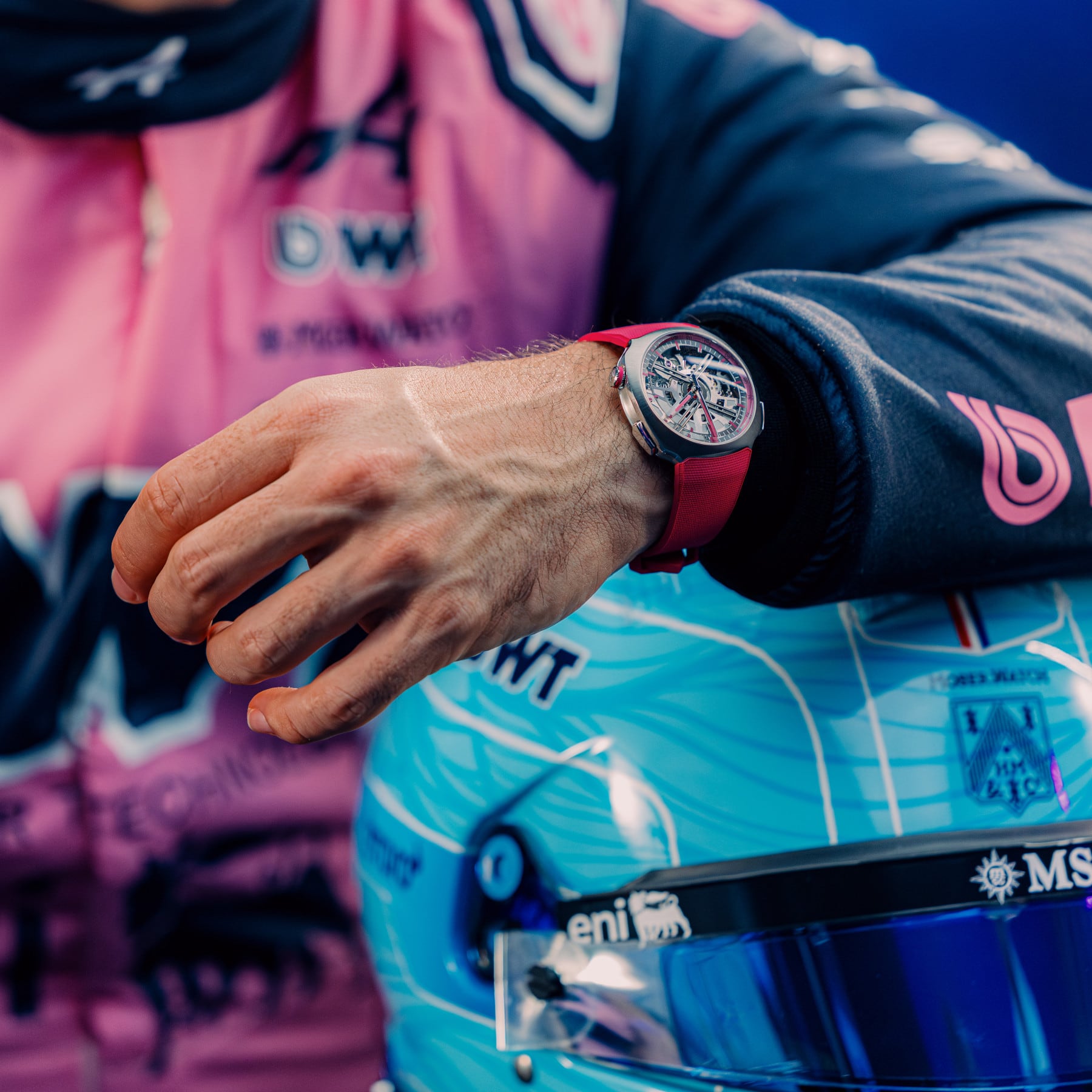 The Streamliner Alpine Drivers Pink Edition bursts onto the track, inspired by the eye-catching second livery of the BWT Alpine Formula One Team. Born from close collaboration with the Alpine drivers, this is a watch you know, in a new hue. You’ve got all those lovely little details: twin V-shaped bridges inspired by single-seater suspension. A central caseback bridge shaped like a racing helmet. An openworked rotor echoing the Alpine A110 wheel rim. Powering it all is the HMC 700, our first fully skeletonised chronograph, complete with a flyback function for instant, precise timing. Pure adrenaline. Now in pink.