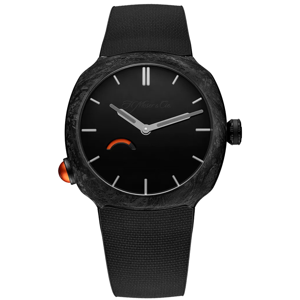 The case is crafted from forged quartz fibre, a material rarely seen in watchmaking. Lighter than it looks yet remarkably resistant, it offers a unique aesthetic freedom, forming a matte surface with a distinctive moiré pattern: no two cases are alike. Inside, a titanium “sarcophagus” protects the movement, ensures water resistance to 10 ATM, and anchors the integrated rubber strap. A bold construction, engineered for both performance and comfort.