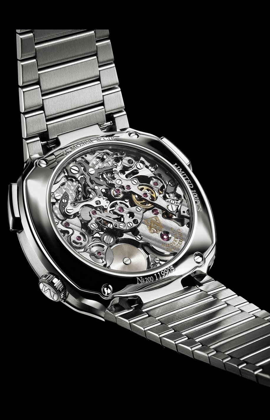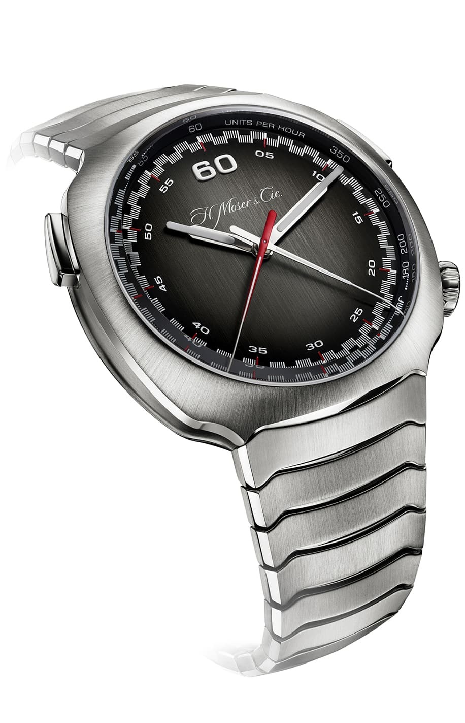 The Streamliner Flyback Chronograph Automatic is an unprecedented reimagining of the stainless steel chronograph. It unites the codes of minimalism and contemporary elegance that the Schaffhausen brand has made its trademarks, while exploring novel ways to express the beauty and durability of stainless steel. With an emphasis on ergonomics, the result in a seamless integration between the case and the bracelet, through fluid lines and curved forms. Equipped with what can be regarded as the most innovative chronograph movement in contemporary watchmaking, the Streamliner Flyback Chronograph Automatic is a new expression in H. Moser & Cie’s design ethos.