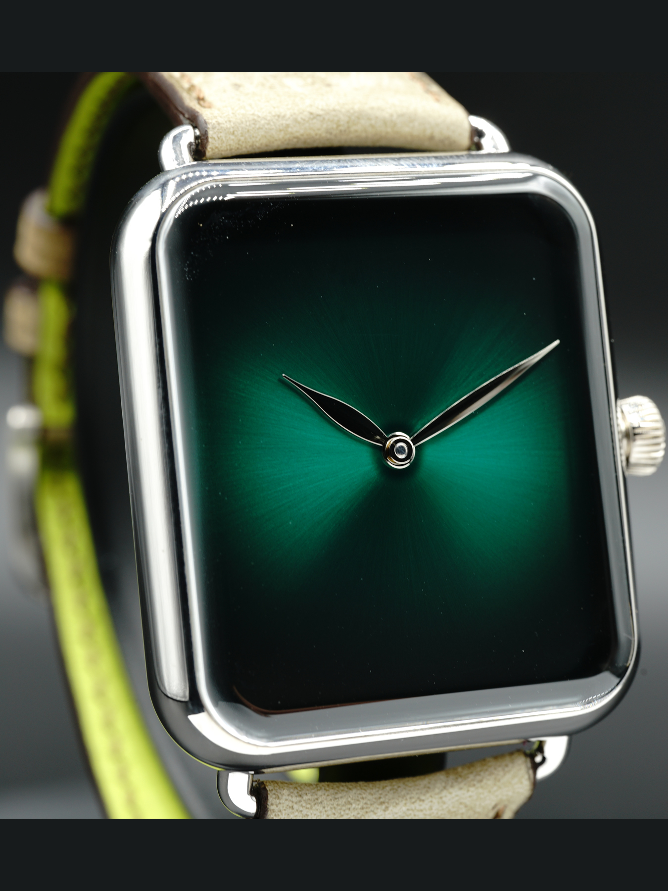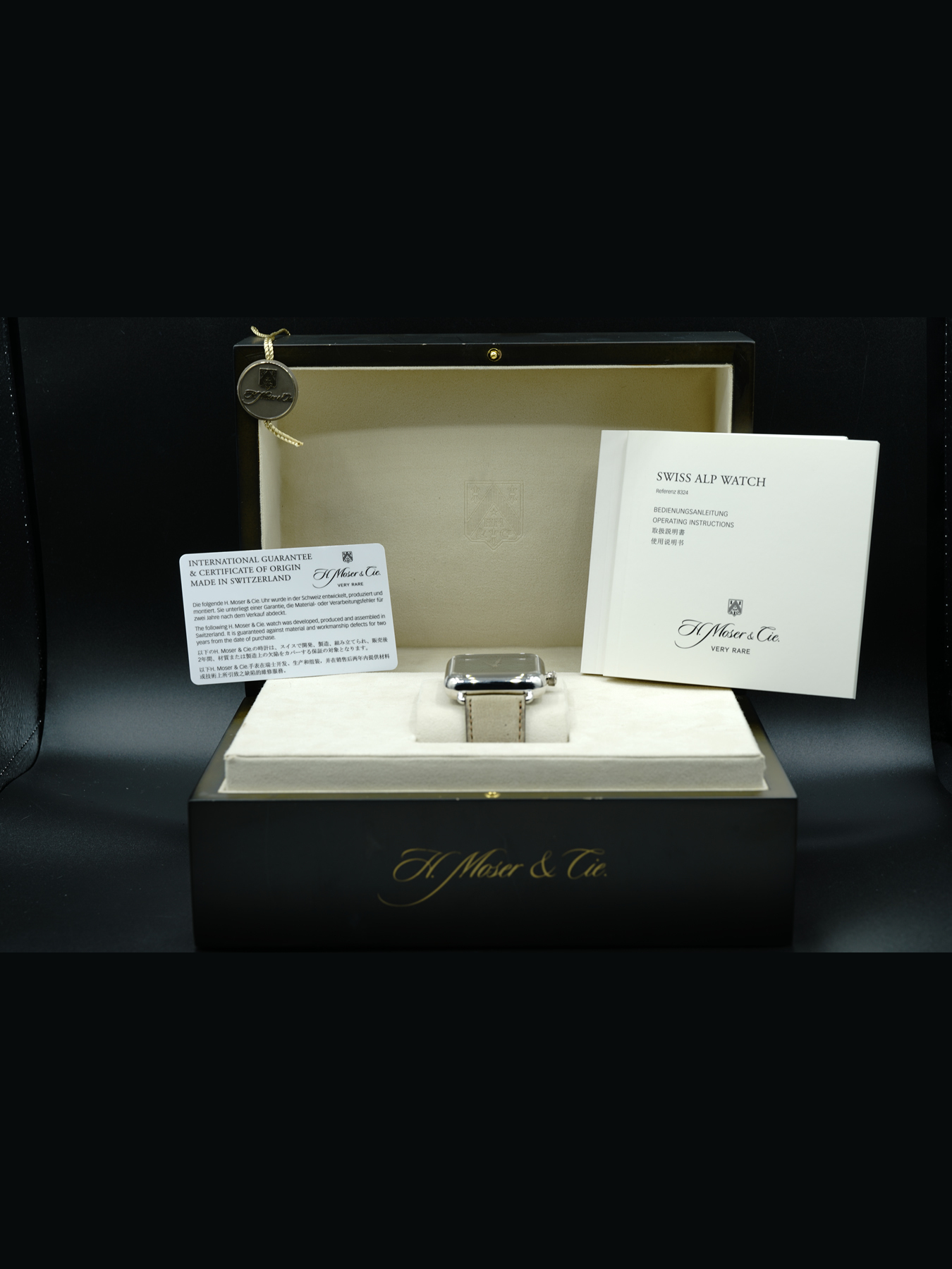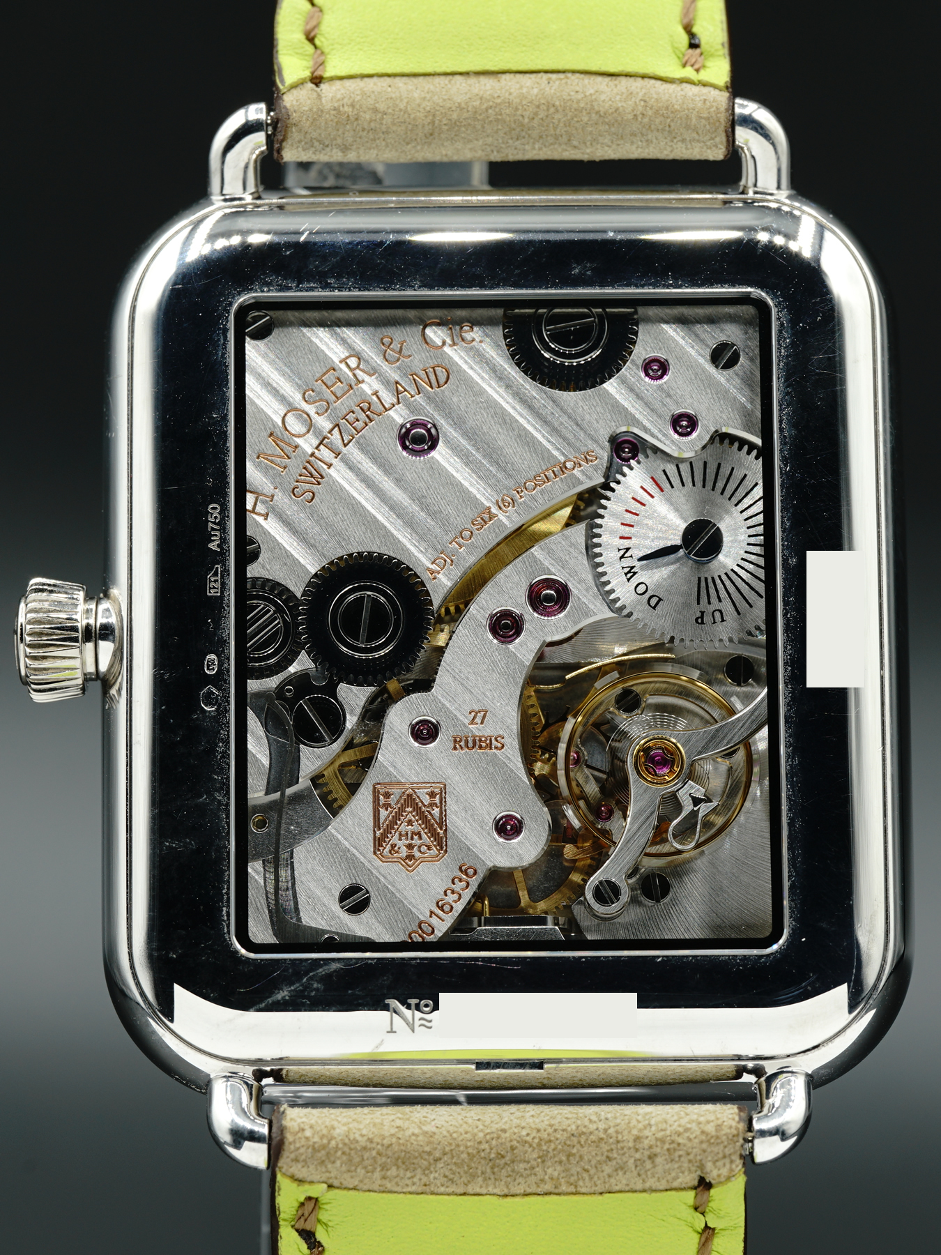 H. Moser & Cie. delivered a perfect example of minimalism-with-style in the form of the Swiss Alp Watch Concept Cosmic Green. This rectangular design is limited to 20 pieces, is powered by the hand-wound HMC 324 calibre with a minimum 4 day power reserve, and sports a green dial that can only be described as "gorgeous". This watch comes with its original box, papers, and international guarantee.