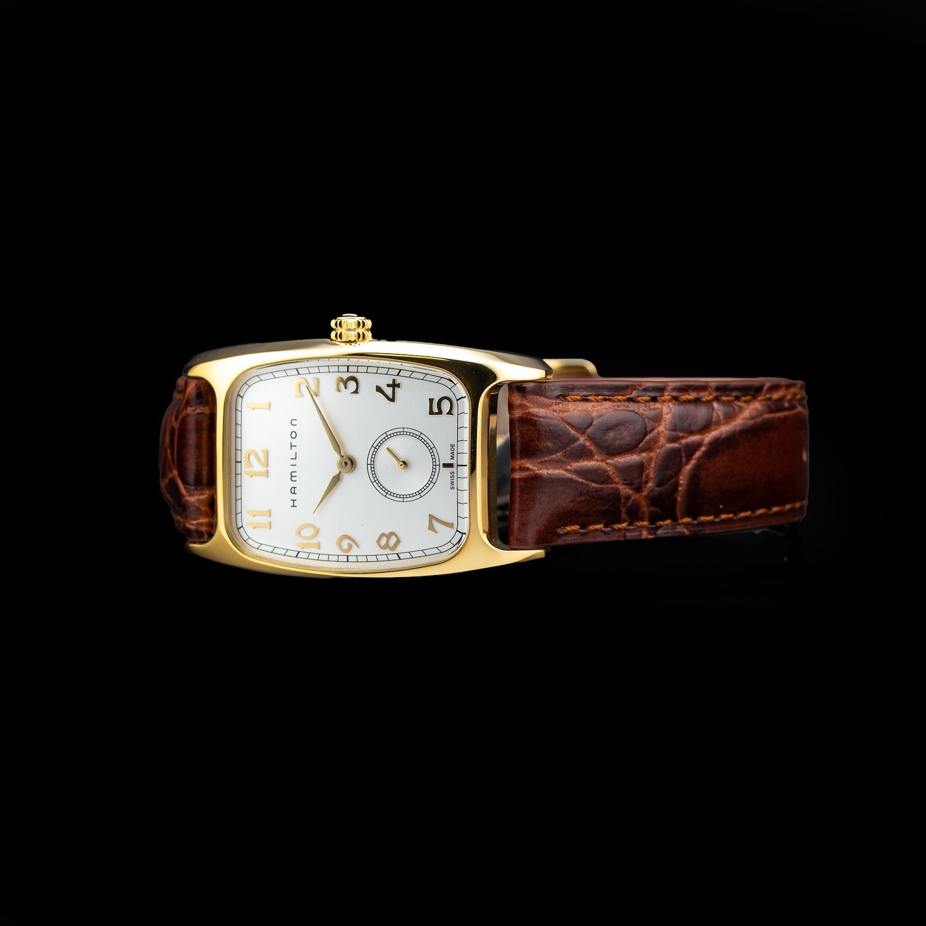 First introduced in 1941, the Boulton was one of Hamilton's most popular watches from this decade. Originally revived and reintroduced in the 1980s, the Boulton has been adapted for modern life, with slightly larger proportions than the original. With a reshaped leather strap and steel case, the Boulton offers Swiss precision while staying true to its American spirit.