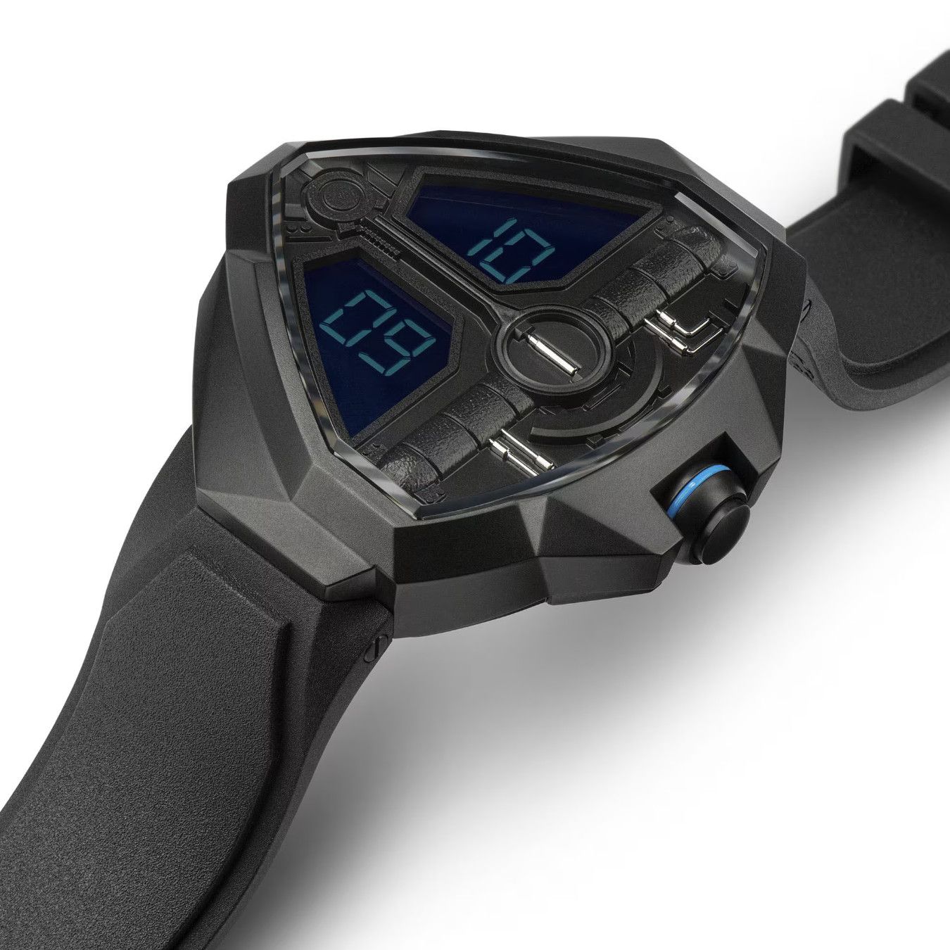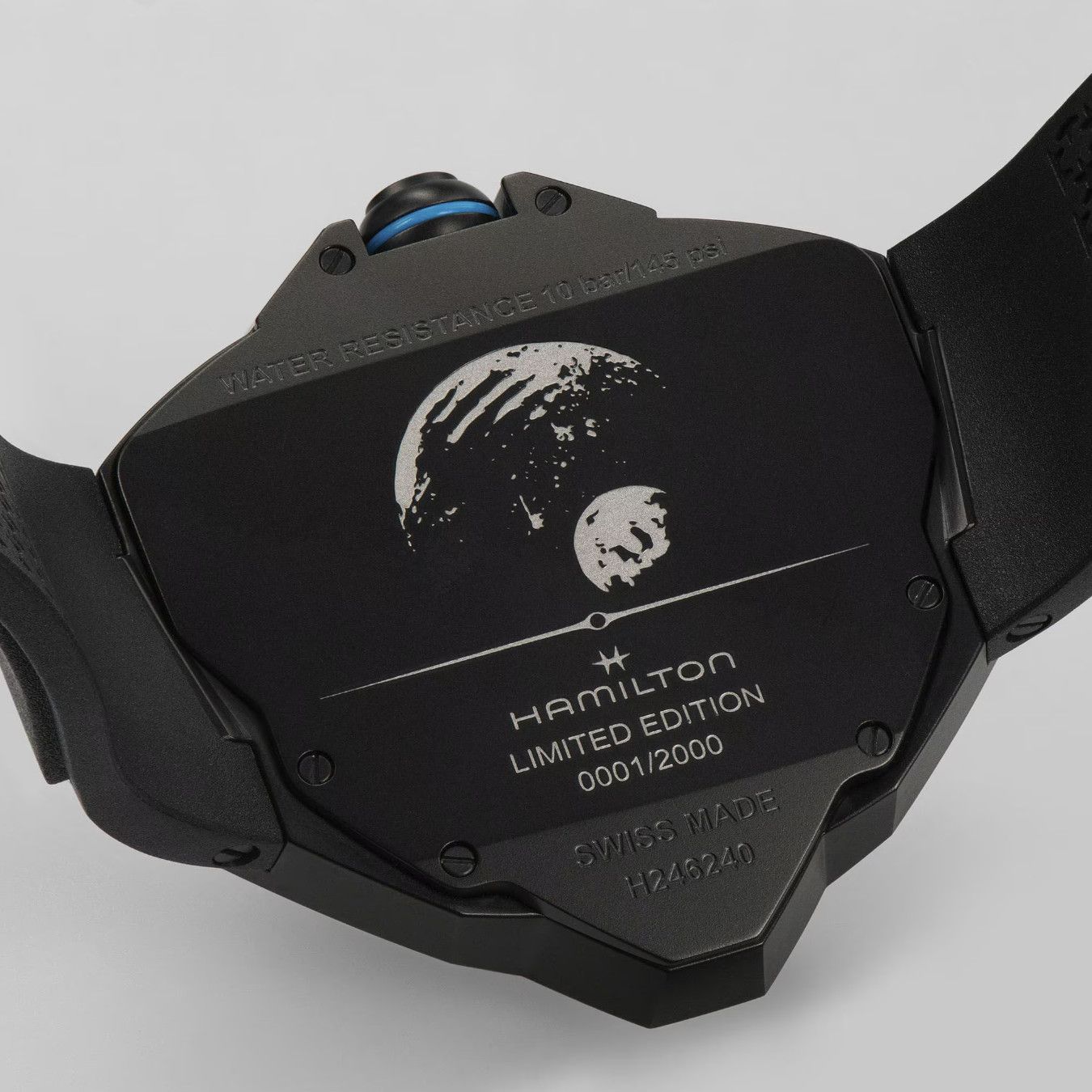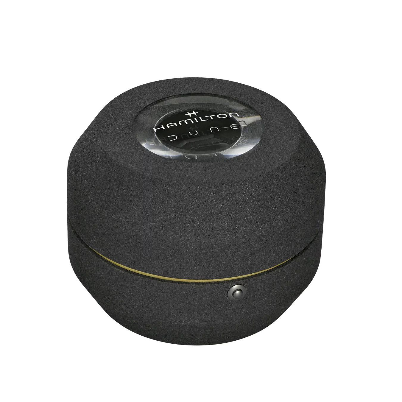 In close collaboration with “Dune: Part Two” prop master, Hamilton designed and created the custom “Desert Watch” to fulfill filmmaker Denis Villeneuve’s vision for the film. The Ventura Edge Dune limited edition is inspired by the wrist device and bears a mat black PVD-coated angular case. Its digital display glows up in blue, a reference to the unmistakable blue eyes of the Fremen people, while the dial imitates the relief elements we can see on the prop in the film. This limited edition piece comes with a commemorative packaging inspired by the film that fans of the films and books, as well as collectors, won’t want to miss!