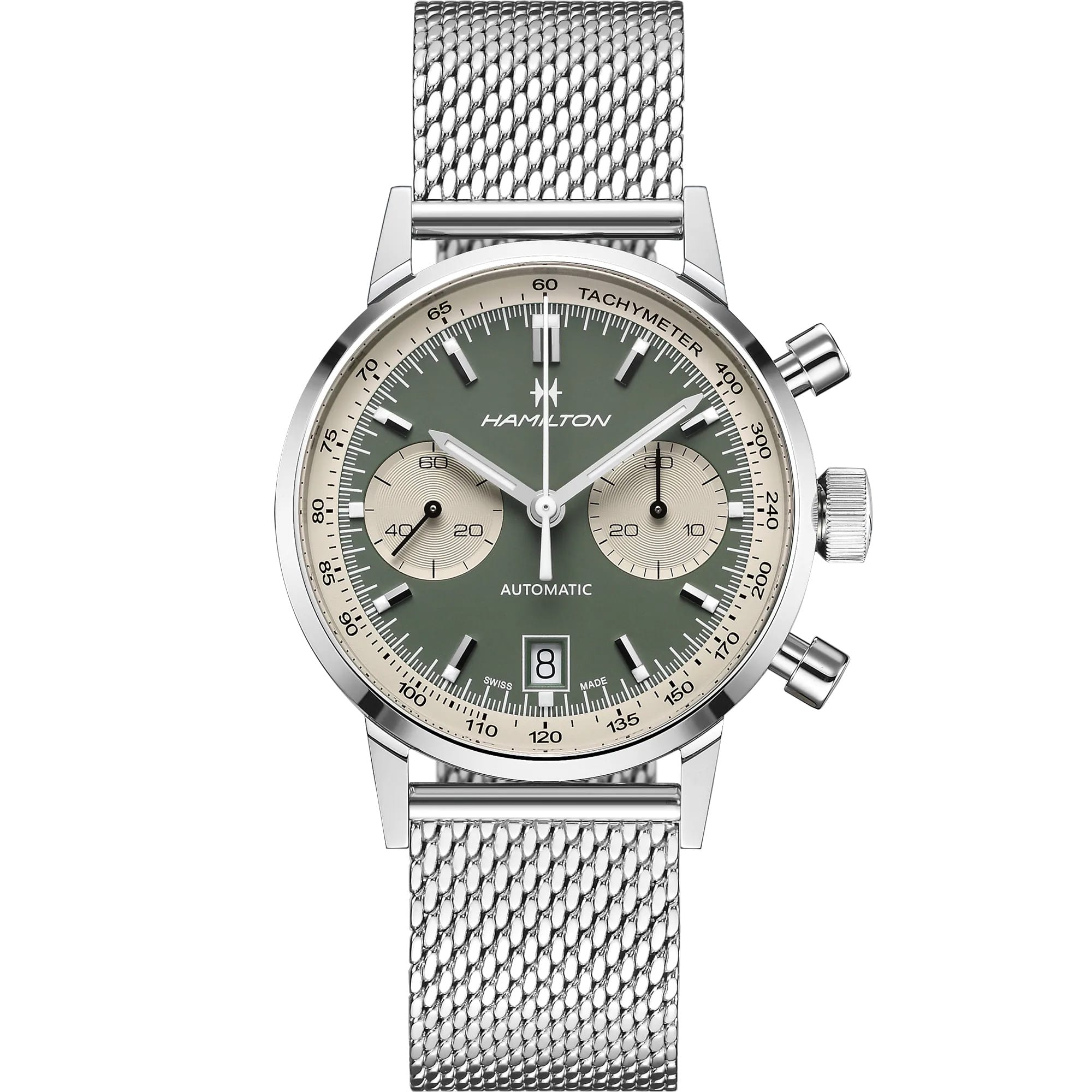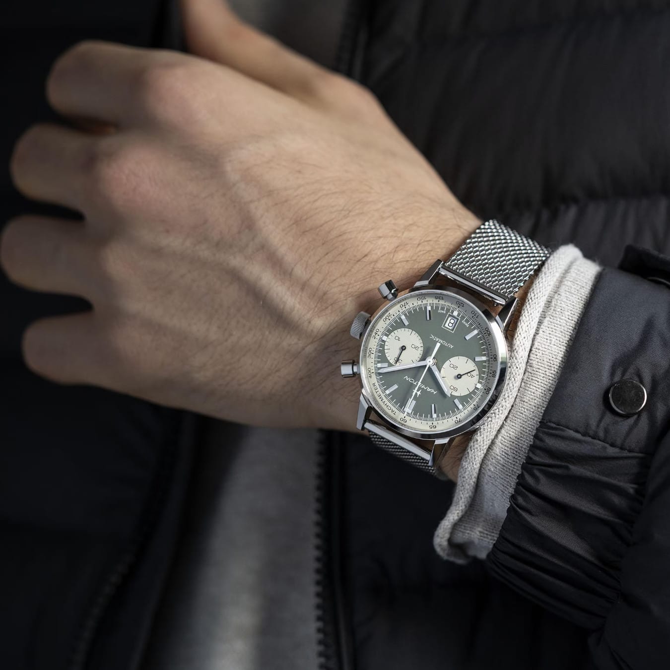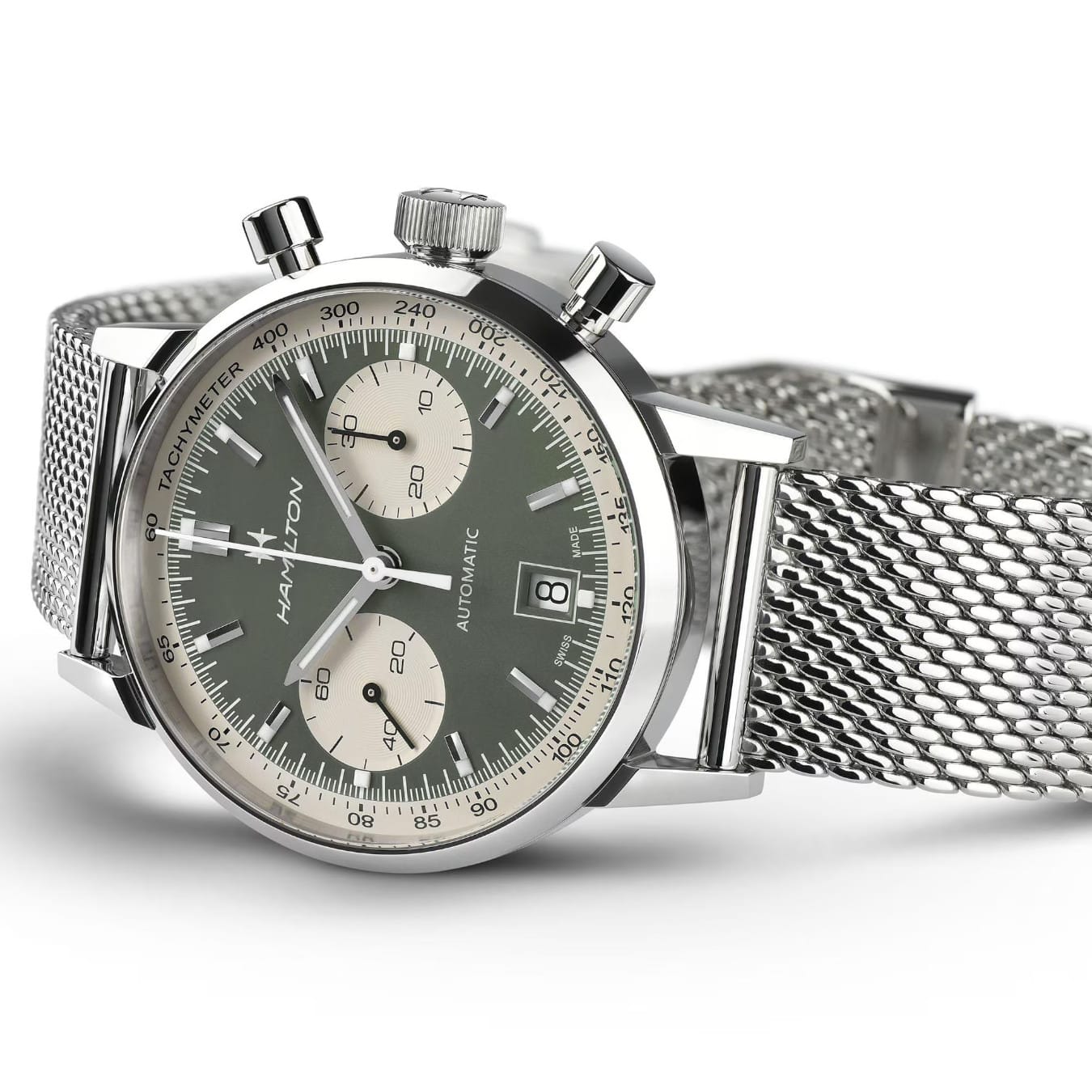 With sporty yet classic design and true vintage appeal, the Intra-Matic Automatic Chronograph is sure to catch the eye. A modern take on a 1968 signature piece, it features a distinctive panda dial in a fresh color pairing of light green and white. Whether you choose to wear it with a finely engineered mesh stainless steel bracelet or a high-quality brown leather strap, you’ll have the ultimate in comfort and style.