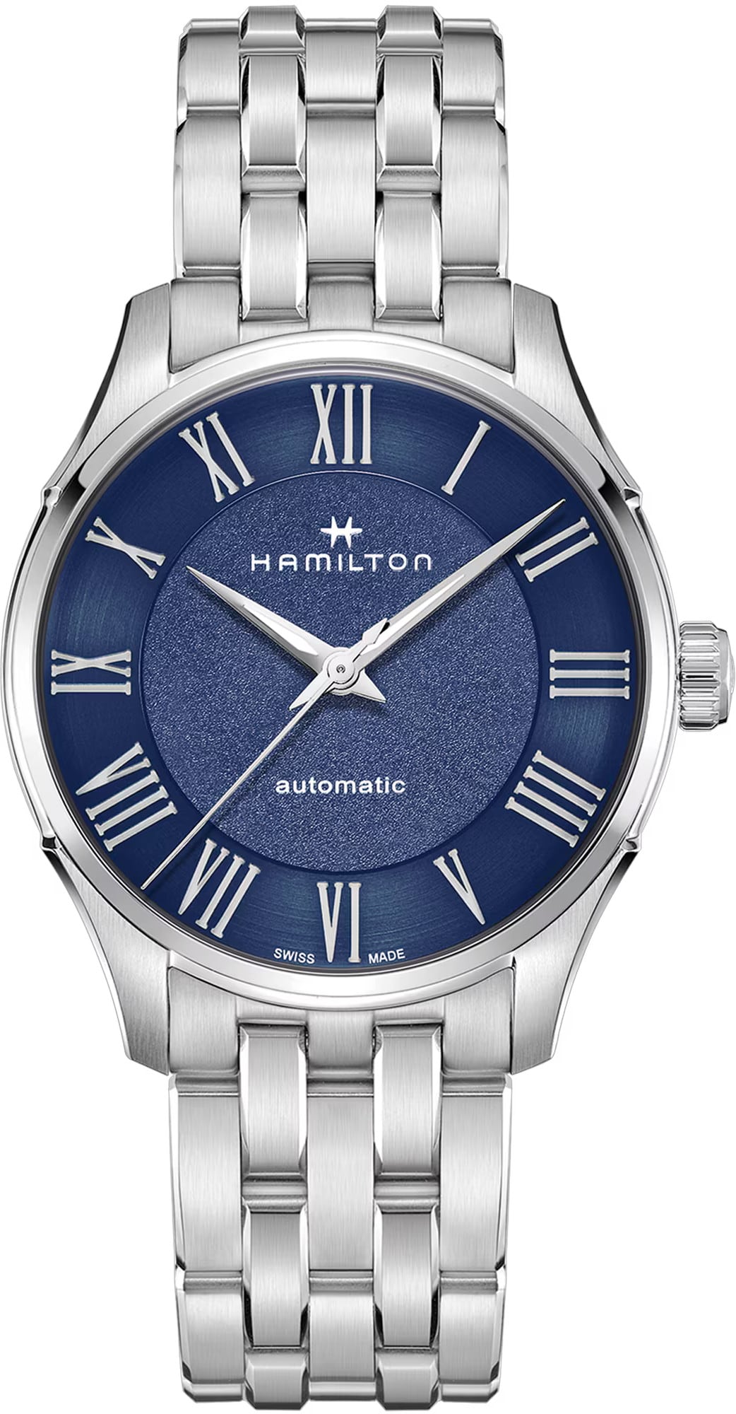 Tradition meets innovation in the Jazzmaster Automatic 40mm. Roman numerals on the dial add distinct style and our H-10 movement with its anti-magnetic NivachronTM balance spring guarantees precise accuracy. Anything is possible with this high quality timepiece offered with a variety of dial and strap combinations.