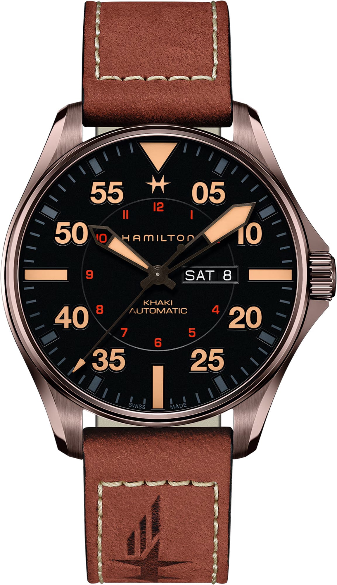 This super-sized 46 mm watch is perfect for a pilot or an urban aviator. With practical day date function, super-readable SuperLumiNova® hands and indexes and the exclusive H-30 automatic movement with up to 80 hours of power reserve. The sky’s the limit for this distinctly Hamilton aviation timepiece.