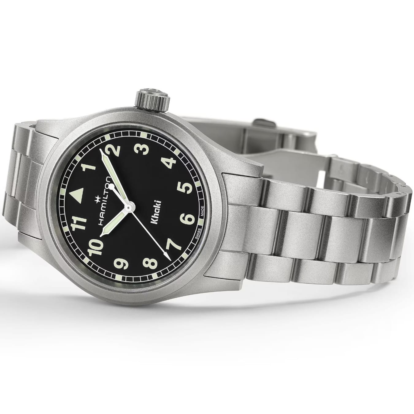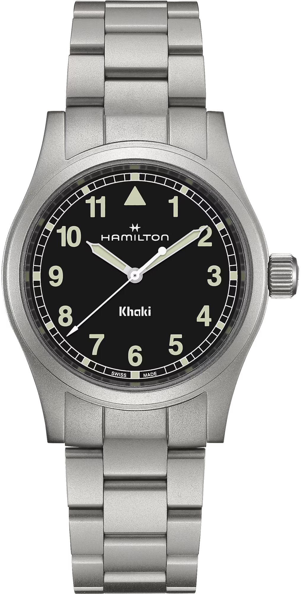 Primed for adventure, the Khaki Field Quartz is a reliable and rugged companion ready for exploration. Taking inspiration from Hamilton's reputation for precision, innovation and utility-focused design, the Khaki Field Quartz pairs a clean white 38mm dial with a modern metal bracelet. Discover our Khaki Field collection.
