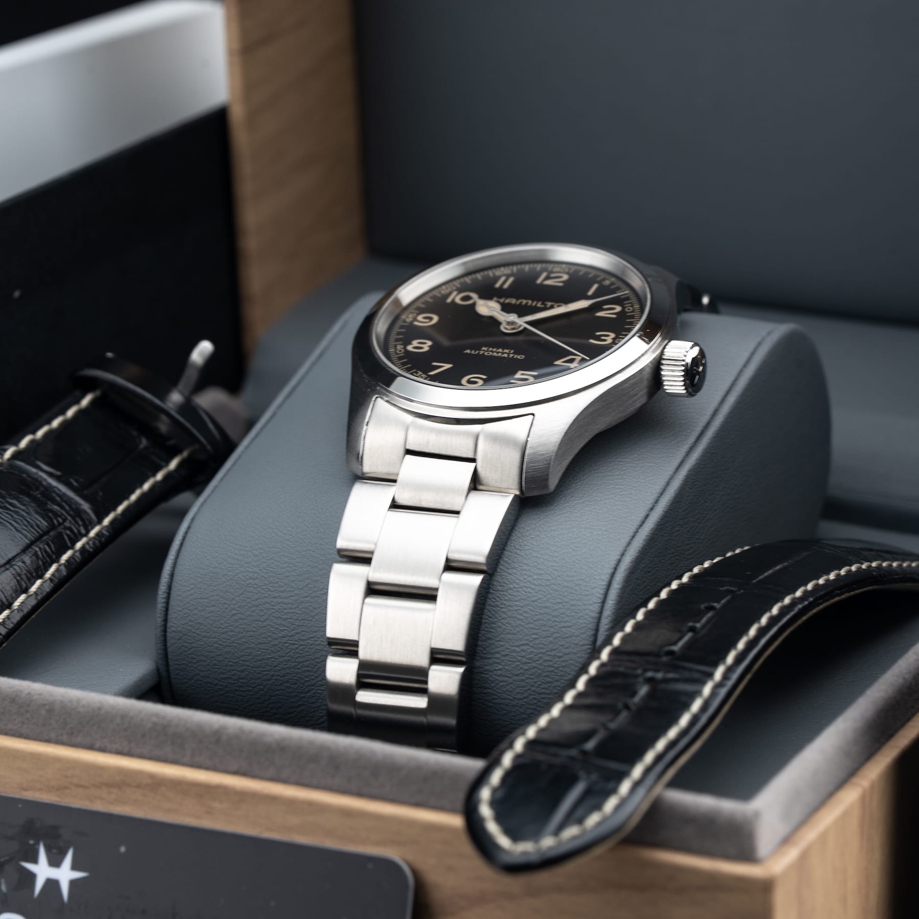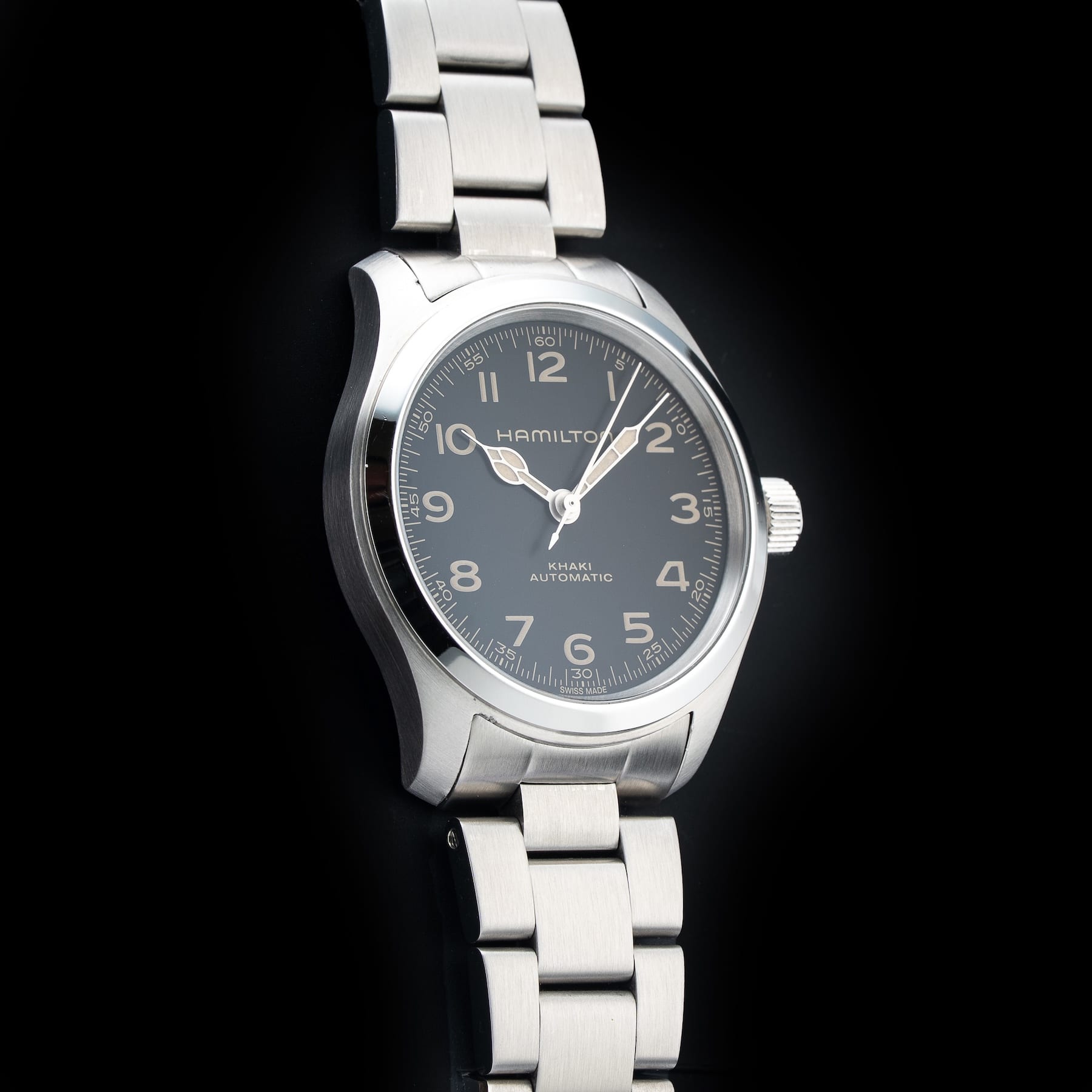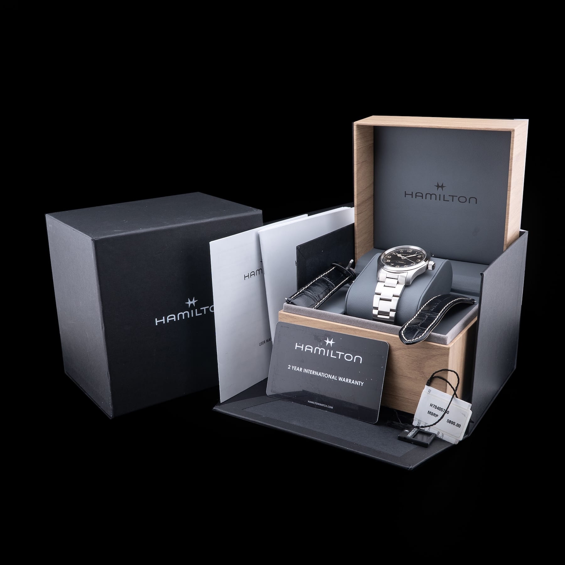 This Hamilton H70405730 Khaki Field Murph 38mm is in GREAT condition it has boxes, papers and warranty card not dated. Extra strap. This watch has been fully authenticated and certified by Exquisite Timepieces.
