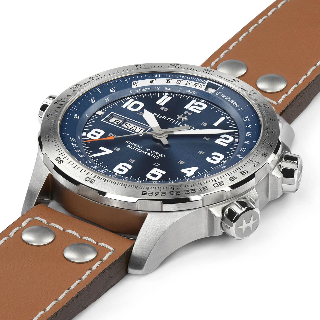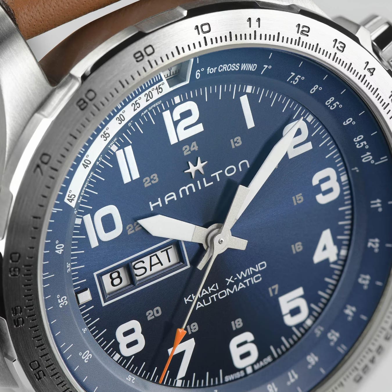 Hamilton has extended the Khaki X-Wind collection to include an automatic Day Date model. It relies on large SuperLumiNova® numerals and sporty hands for super readability - even when you only have a split second to glance at the dial. The Day Date window at 9 o'clock ensures the display is well balanced, clean, clear and ready for take off.