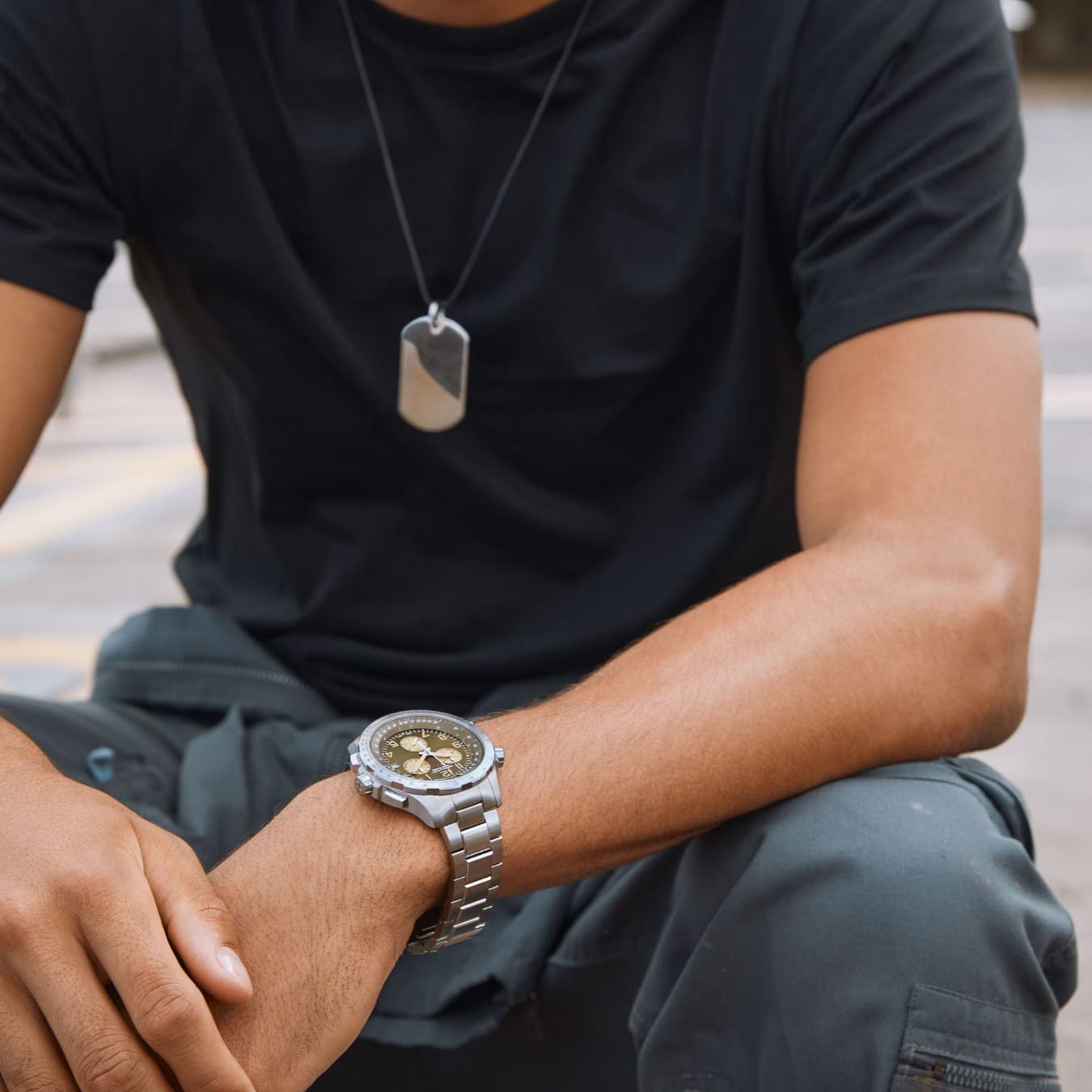 Crosswind calculator, chronograph and now a second time zone: It takes a super sized 46mm stainless steel case to contain all the aviaton features the Hamilton designers have packed into this latest addition to the Khaki X-Wind collection. Adventure meets accuracy and makes a lasting impression, whether you're the captain of the craft or on board as a passenger.