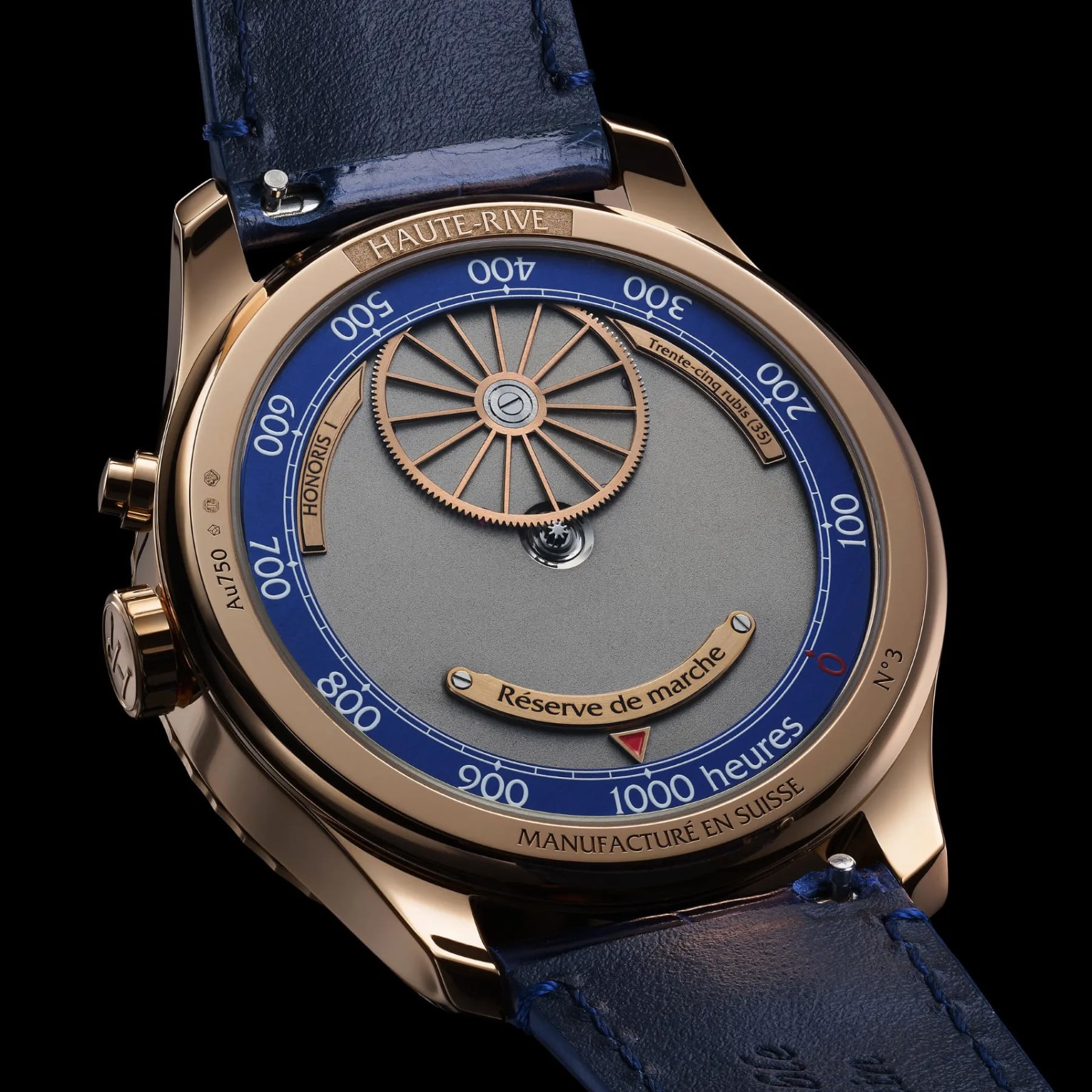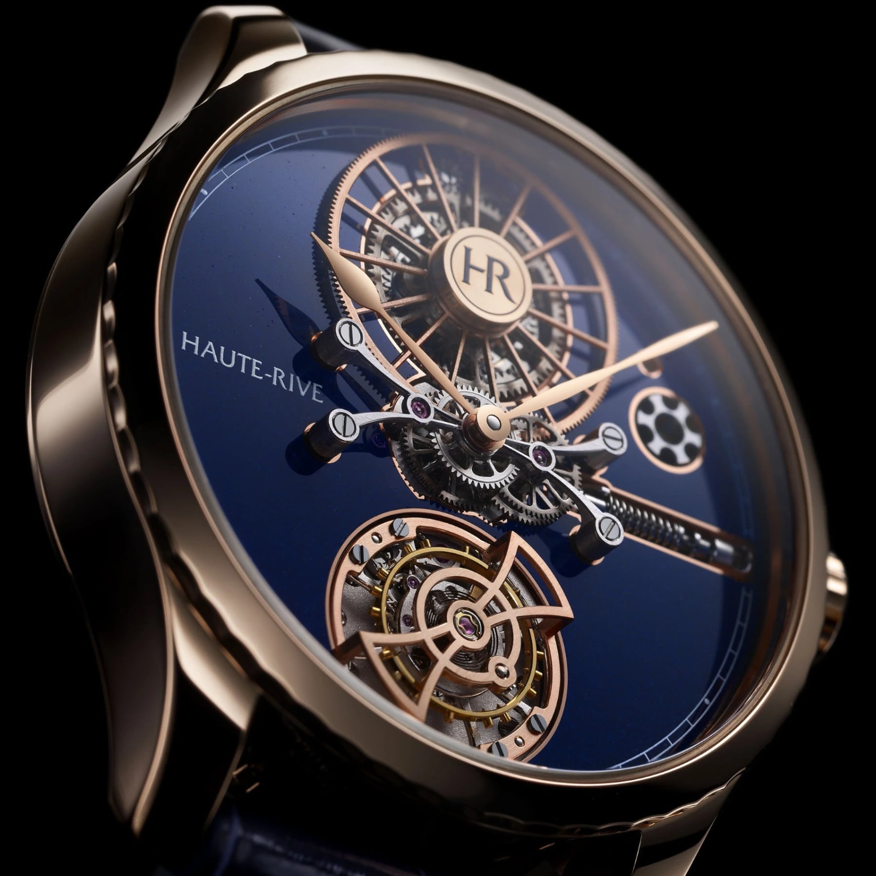 In this version, HONORIS I features an 18K rose gold case and a luminous midnight blue grand feu enamel dial. At its center, the flying mystery tourbillon appears to float in space, powered by a patented in-house movement with an extraordinary 1000-hour power reserve. The 288-component caliber is a testament to Haute-Rive’s dedication to mechanical excellence. The watch comes with a hand-stitched calfskin or alligator leather strap, secured with a rose gold pin buckle. HONORIS I is a refined expression of Haute-Rive’s watchmaking philosophy.