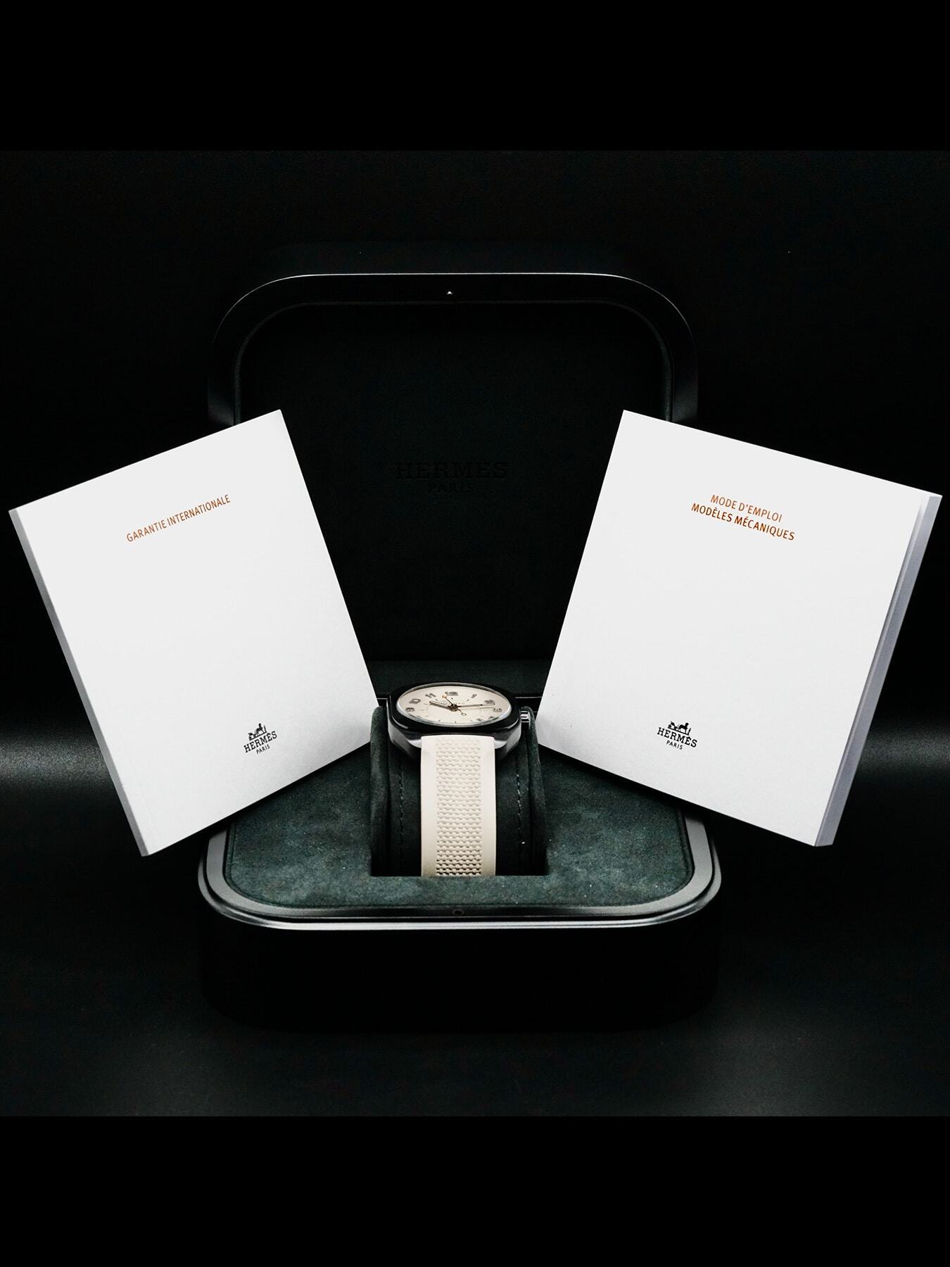 This Hermès x Hodinkee H08 Limited Edition is in GREAT condition. This watch includes its Original Box, Original Papers and Warranty Card Dated 2021. Scratches on left side of case. This watch has been fully authenticated and certified by Exquisite Timepieces.